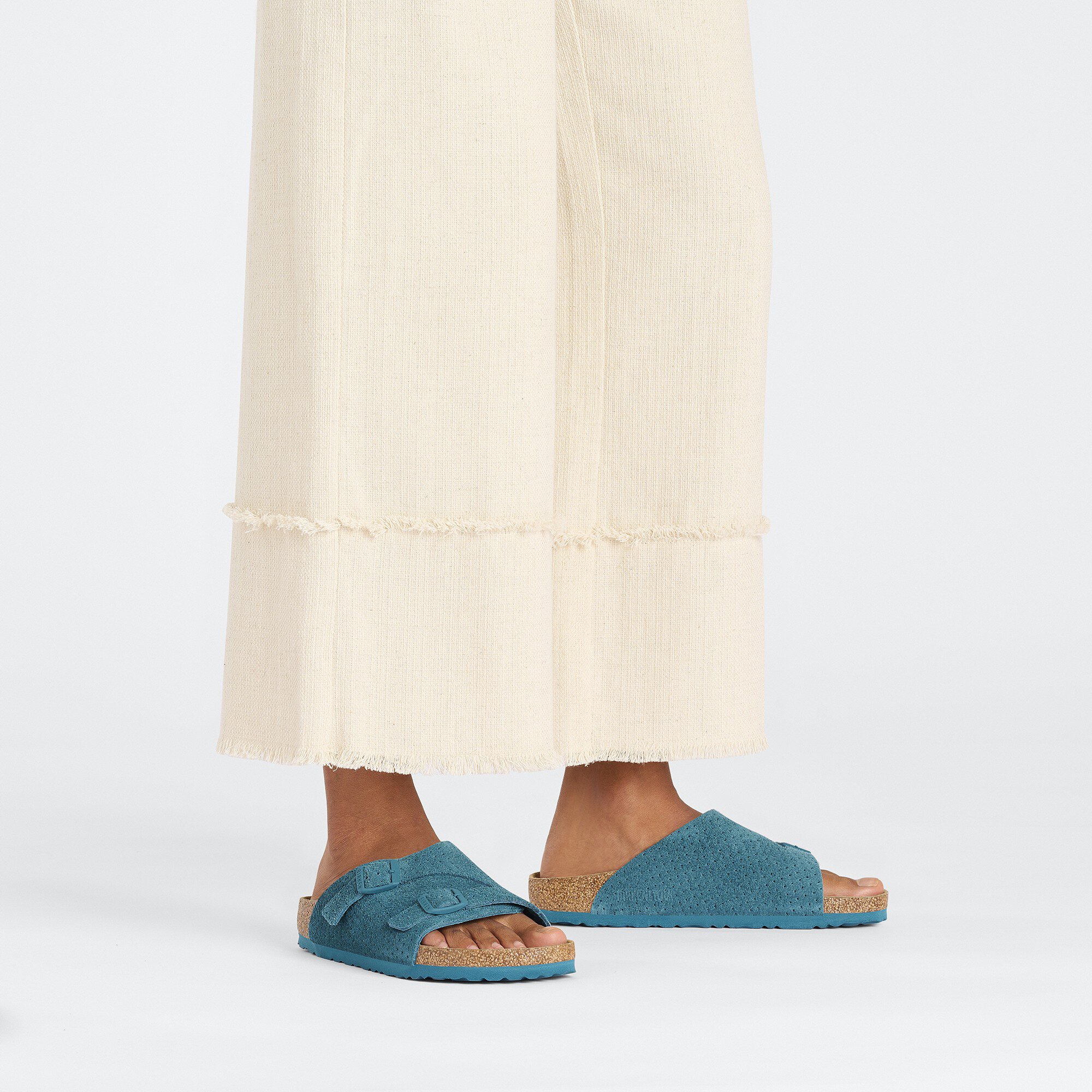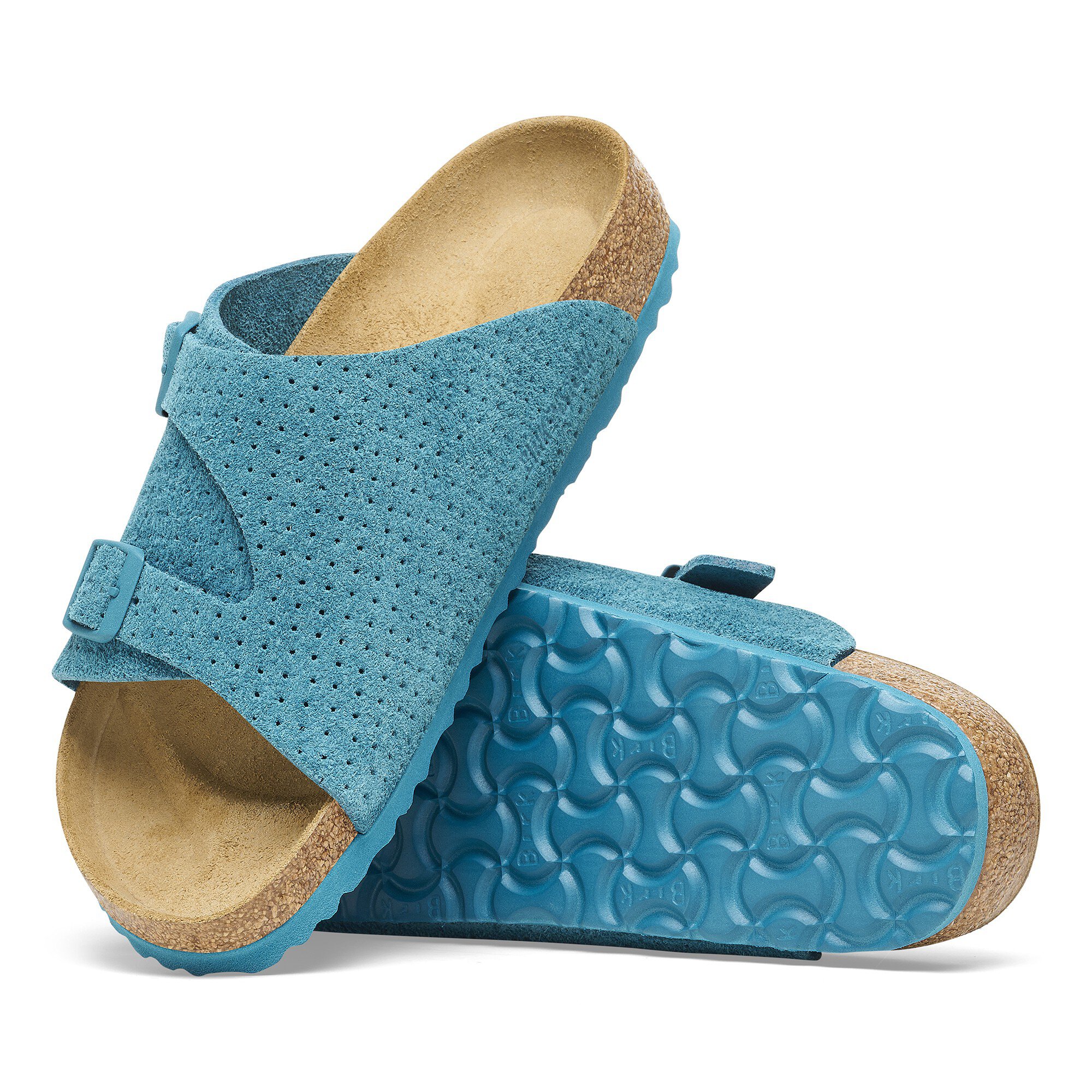 Two in one! The BIRKENSTOCK Zürich combines the stability of an enclosed shoe with the lightness of a sandal. This version features a polka dot design, giving the sandal a breathable look and feel. The upper is made from especially soft suede which hugs the foot like a second skin.