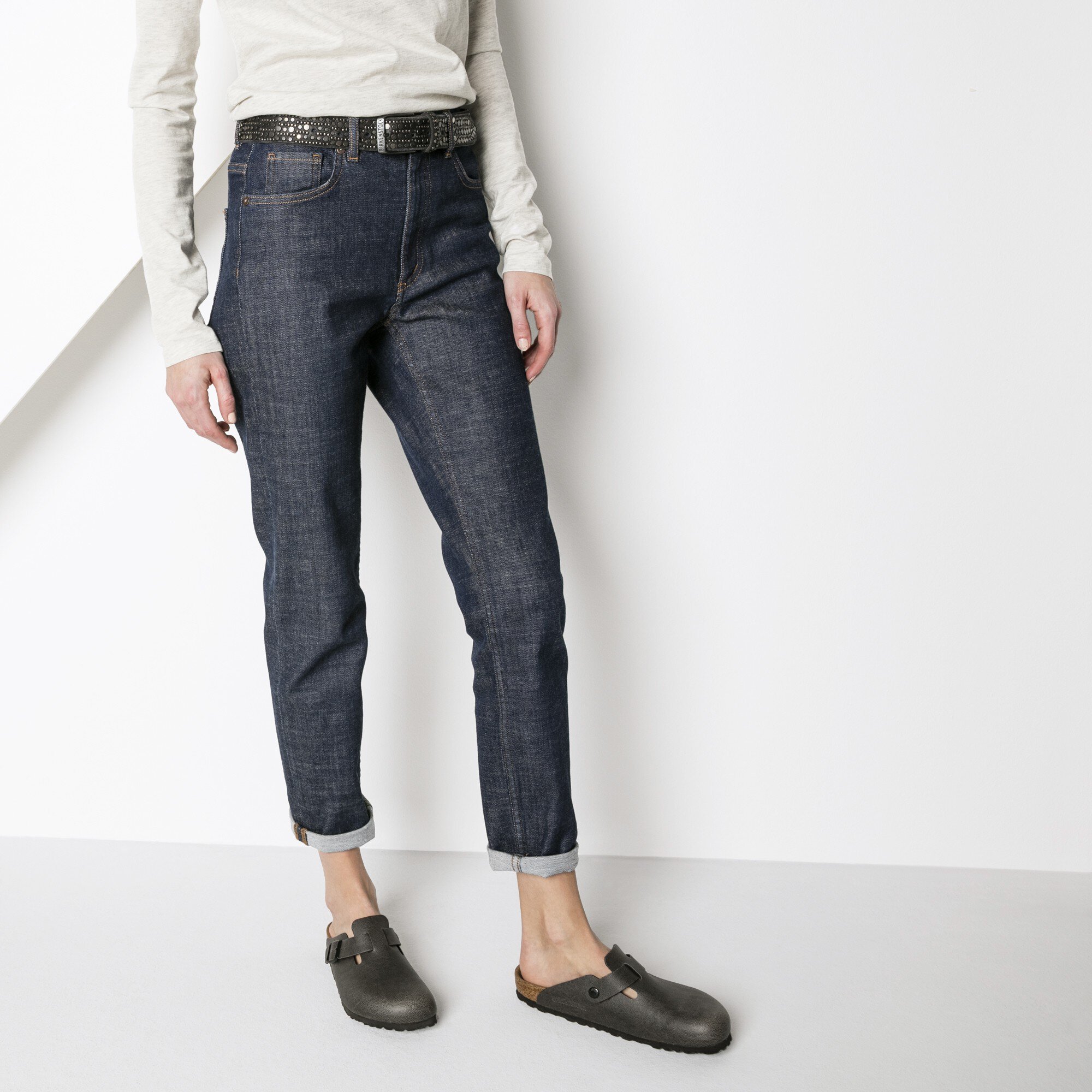 Natural leather can be recognized by its untreated surface. BIRKENSTOCK purposely does not treat surface grains and other characteristic features. BIRKENSTOCK uses sturdy leather with a thickness of 2.8 to 3.2 millimeters as upper material.
