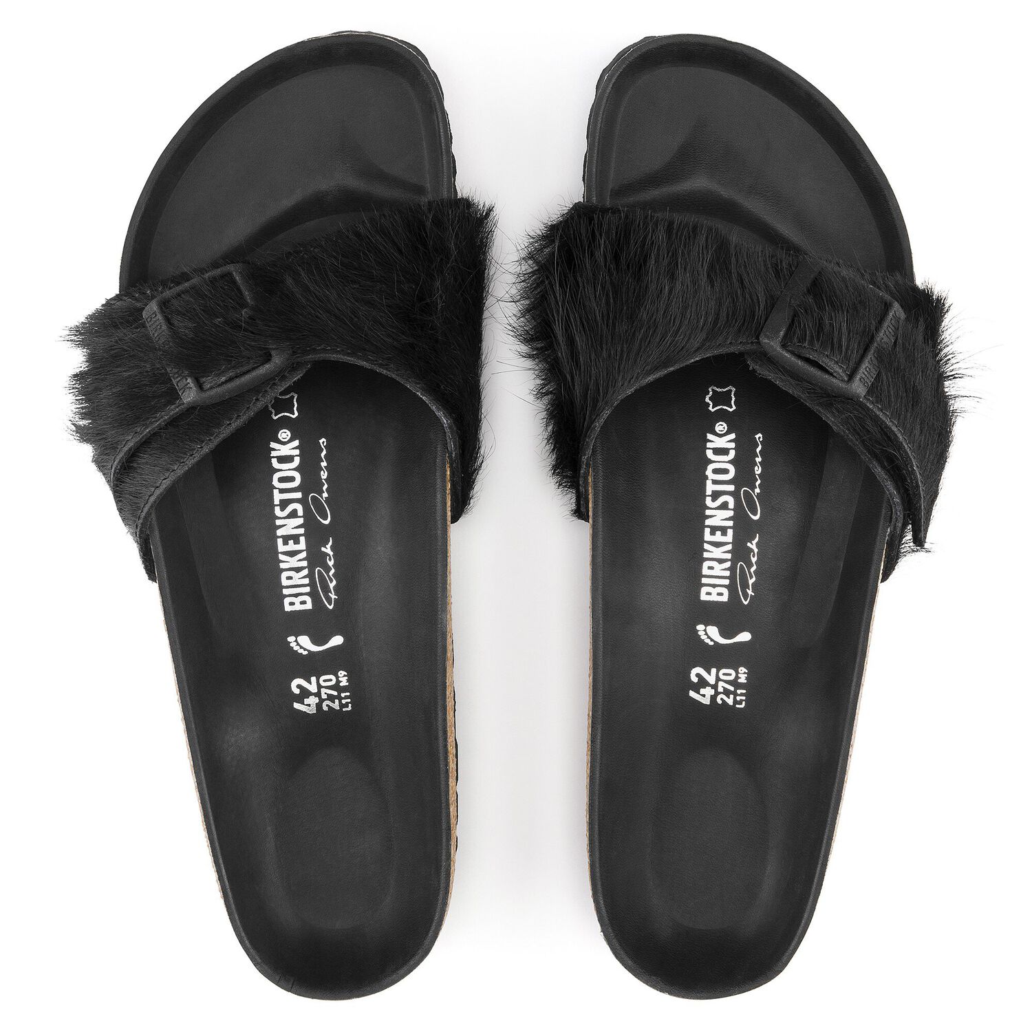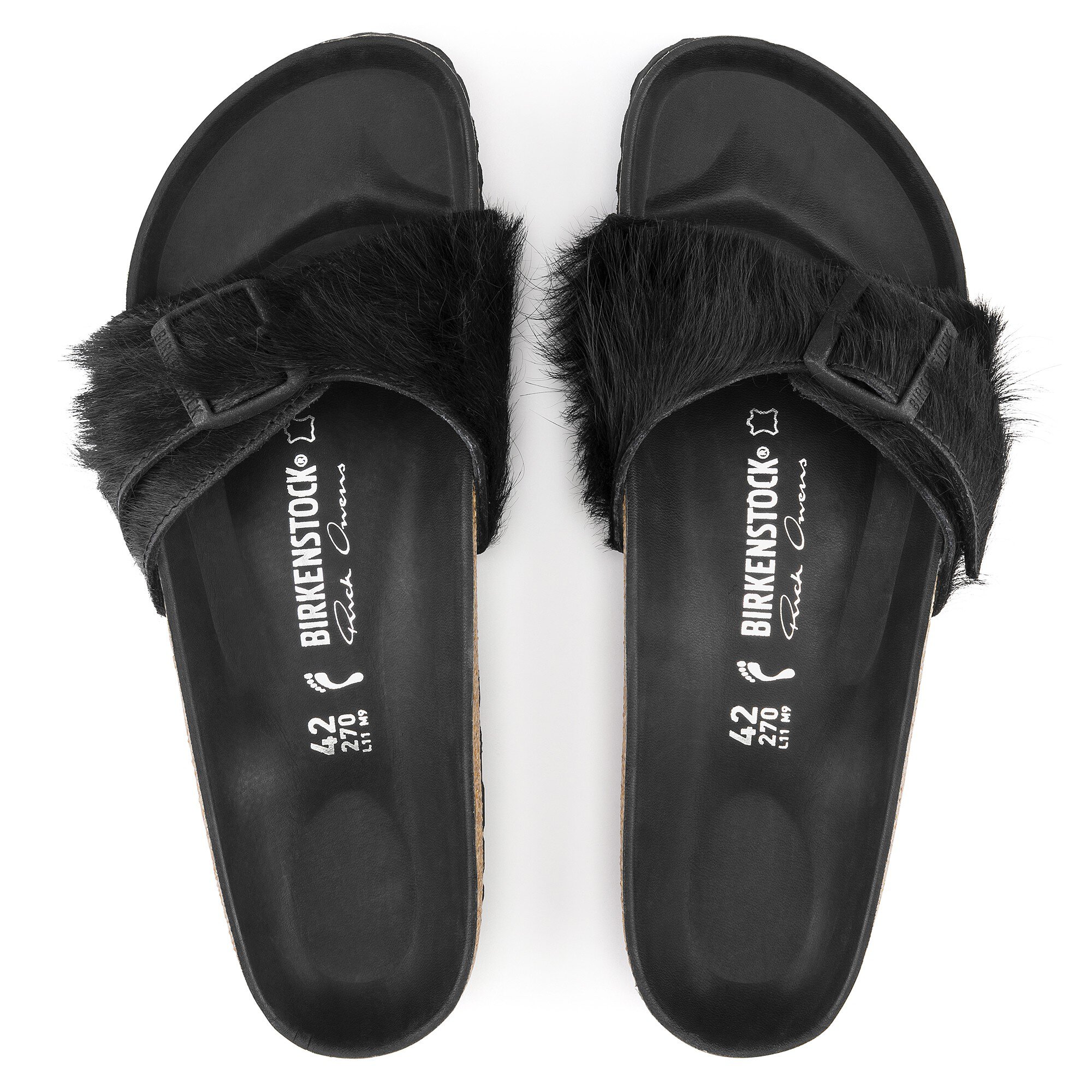 Rick Owens is a master of subtle overstatement. For the Madrid, the ultimate classic of BIRKENSTOCK’s minimalist design, Owens chose to extend the straps, allowing them to almost brush the ground; this detail creates a playful, feather-like lightness while retaining the straps’ adjustable functionality. The extra-long cow fur deftly conveys panache. The result is a subtly theatrical look with sophistication in every detail.