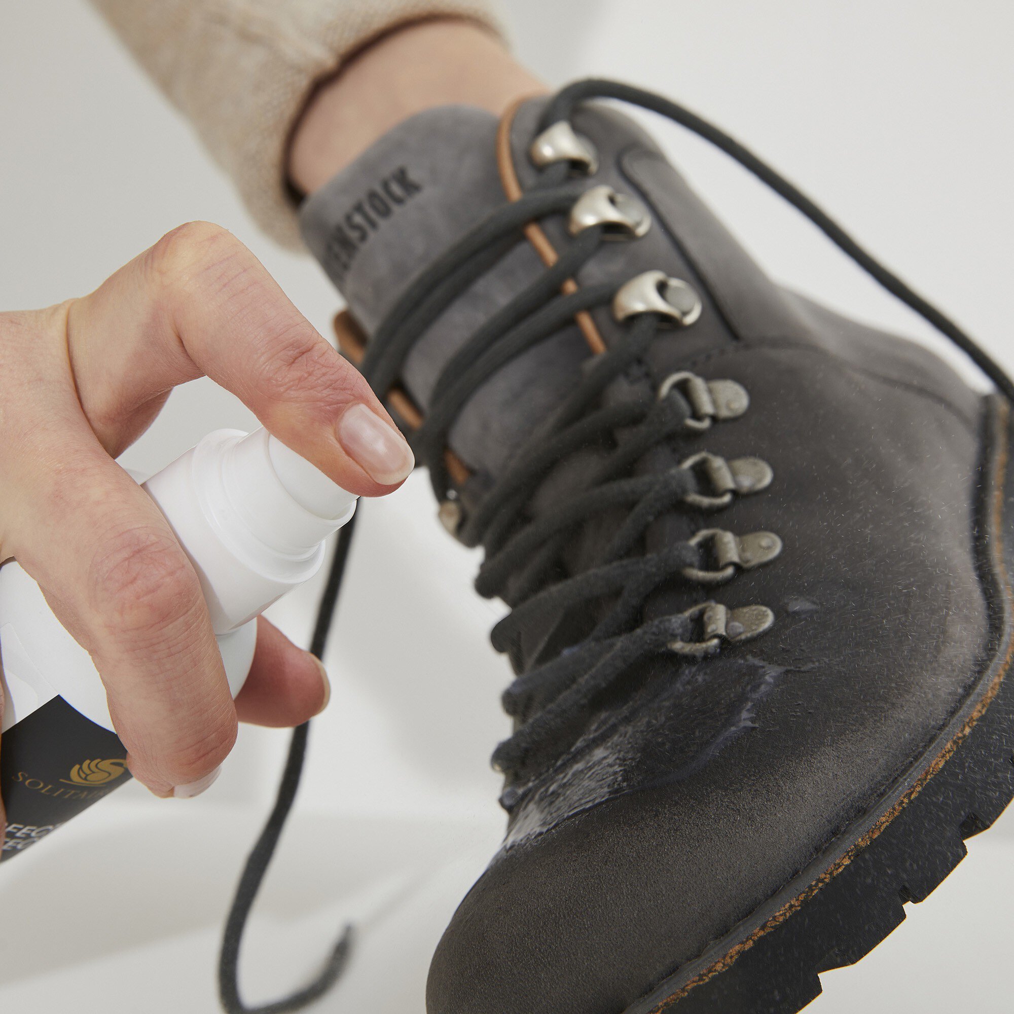 The product “Perfect Protect” of our partner Solitaire is particularly suitable to protect our boots and shoes made from smooth or full-grain leather or textile from dirt and moisture. The highly effective, water-based impregnation can withstand any weather and maintains the breathability of the material. The product is free from PFC, propellants and solvents and comes in a recycled pump bottle – the perfect combination of function and sustainability.