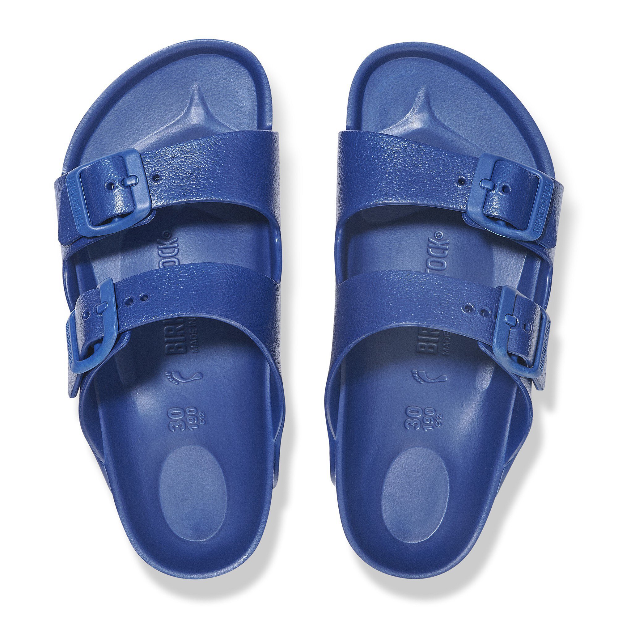 Het BIRKENSTOCK model Arizona is een echte klassieker, die dankzij zijn tijdloze ontwerp al decennia lang populair is. De slipper met twee riemen geeft kindervoeten een optimaal houvast – ook tijdens het hollen en dollen! Deze variant is vormgegeven naar het voorbeeld van het kurken model, maar bestaat uit EVA. De hoogwaardige en op schadelijke stoffen geteste kunststof EVA geeft geen geur af en heeft vele positieve eigenschappen: hij is zeer licht, uitermate elastisch, waterbestendig, huidvriendelijk en hij biedt het vertrouwde BIRKENSTOCK draagcomfort.