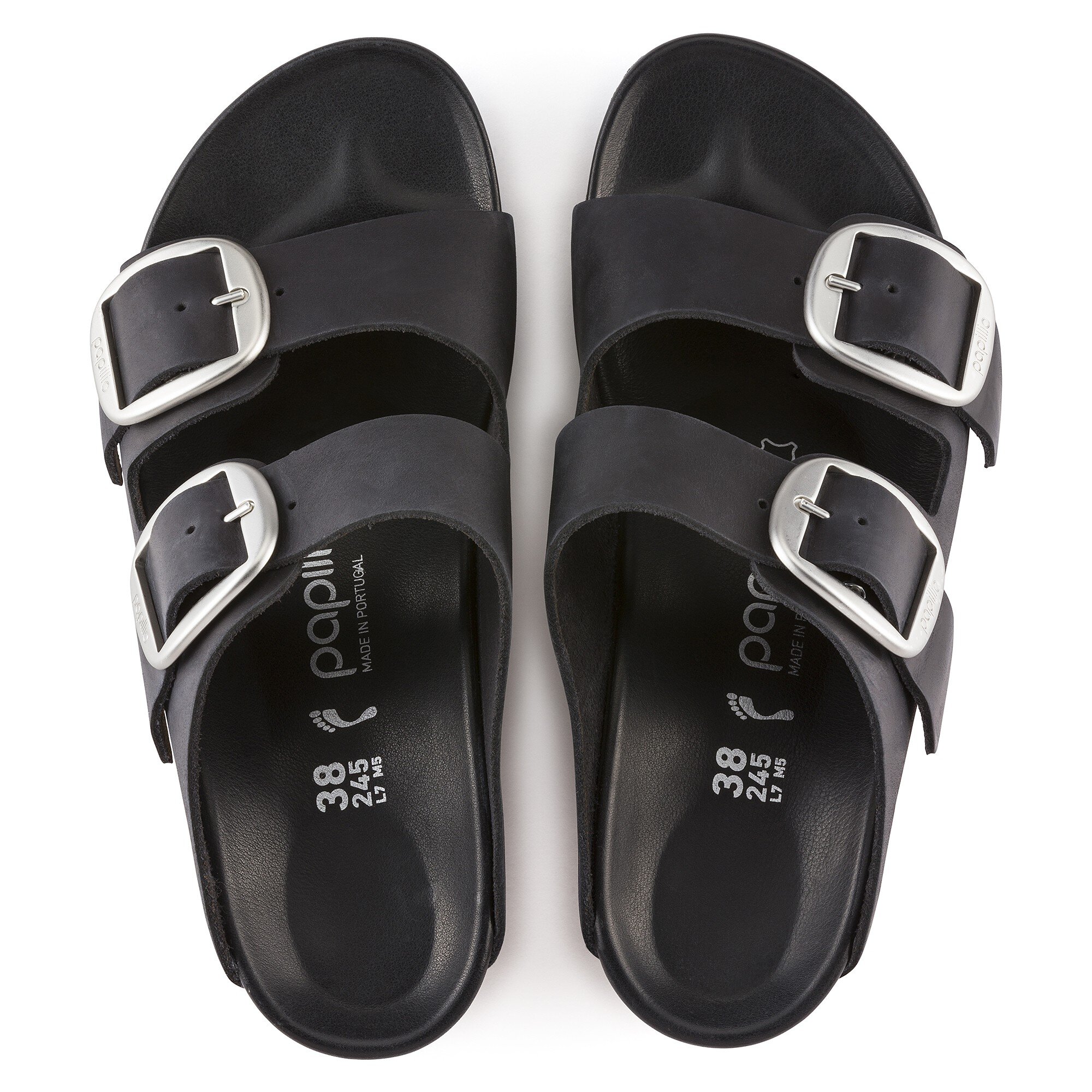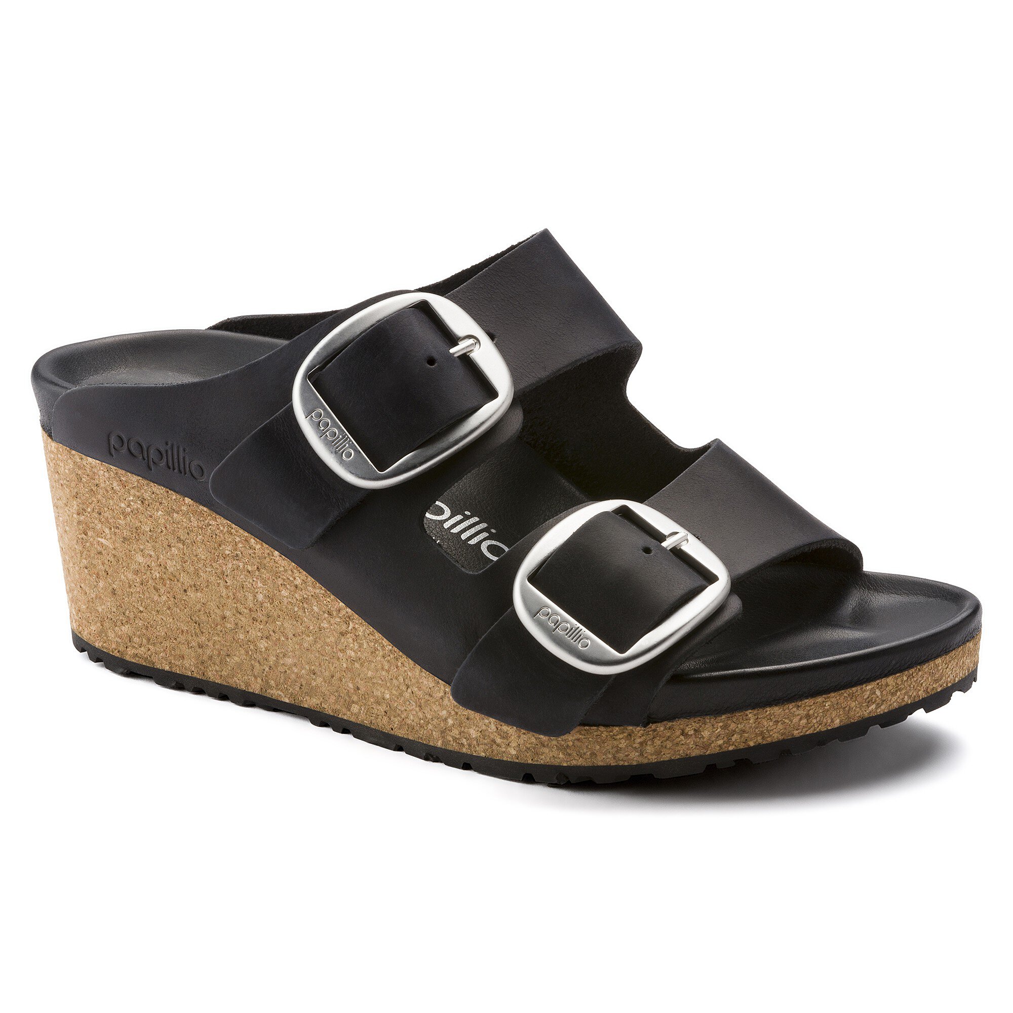 Den feminine sandalen Nora fra Papillio har hæl og overbeviser med sin elegante, grasiøse look. Hemmeligheten ligger i de to remmene som består av én eneste lærrem som strekker seg helt bak til hælen. Varianten Big Buckle viser seg fram med en stor, elegant spenne – et flott og tydelig blikkfang på en ellers minimalistisk sandal. Fotsengen er heltrukket med mykt Piumato-lær, noe som gjør skoen usedvanlig behagelig på foten. Overmaterialet består av ekstra tykt, oljet nubuck med åpne kanter.
