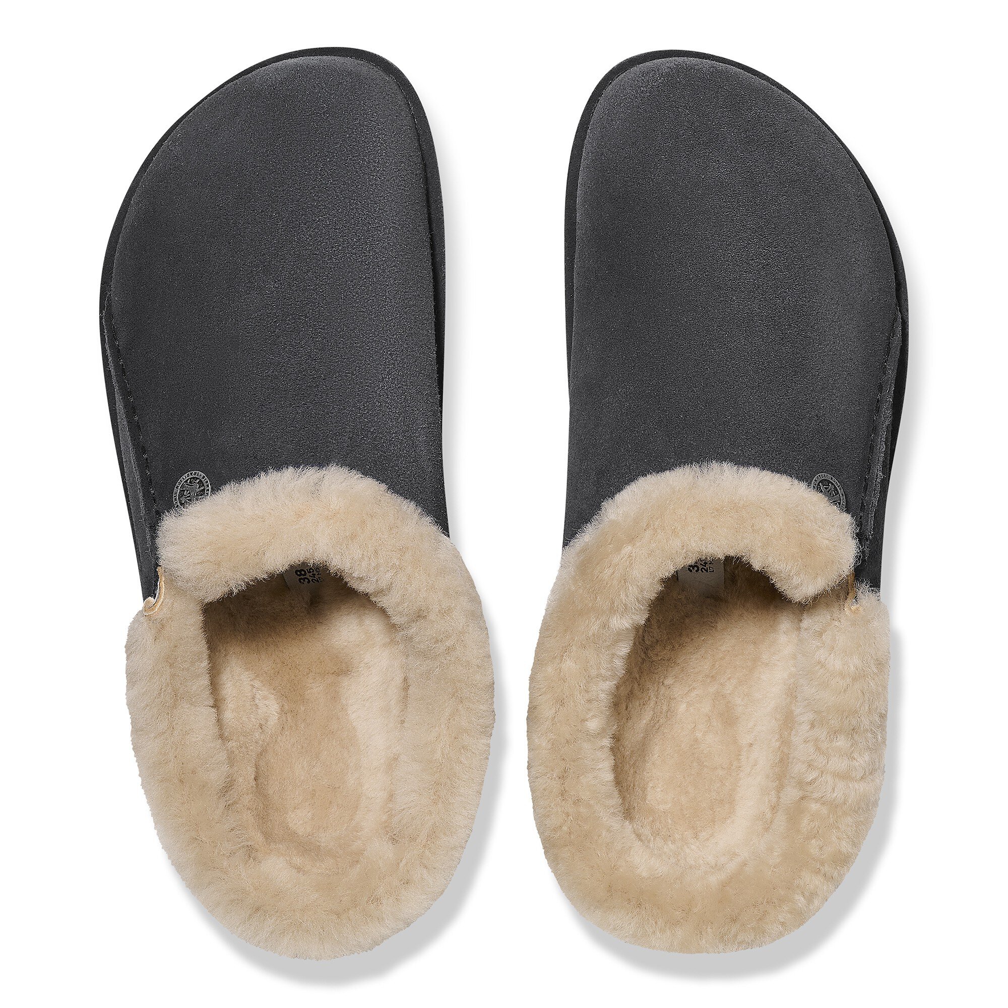 Umiddelbar velvære og trygghet allerede når de tas på! BIRKENSTOCK Zermatt er en tøffel med uttakbar fotseng og åpner dermed for valget mellom tre innlegg. Klassikeren finnes nå i en spesielt god premium-utførelse med lammefellfôr. For en naturlig design sørger overmaterialet i spesielt mykt semsket skinn, som smyger seg inntil foten som hud nummer to.