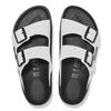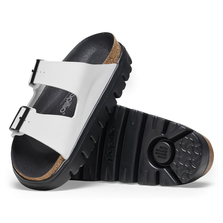 The Arizona is a genuine classic that has been delighting both men and women for decades. Here, Papillio presents the two-strap model with a stylish platform sole with extra deep tread lines. The bevels at the front and back provide for maximum walking comfort. This popular sandal has been given an update in a new material, with a vegan version now available. It is entirely free of animal products, as verified by independent testing laboratories. The upper is made from the skin-friendly, hard-wearing synthetic material Birko-Flor®.