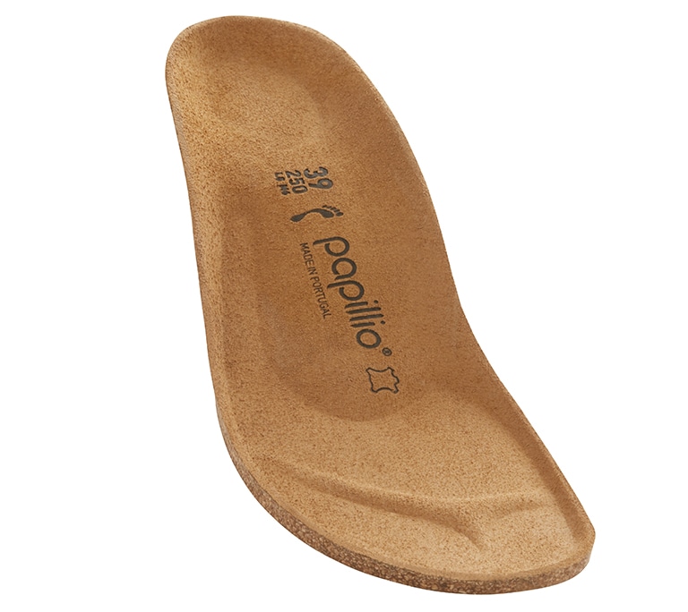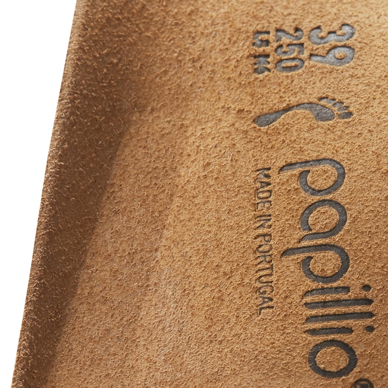 Natural leather can be recognized by its untreated surface. BIRKENSTOCK purposely does not treat surface grains and other characteristic features. BIRKENSTOCK uses sturdy leather with a thickness of 2.8 to 3.2 millimeters as upper material.