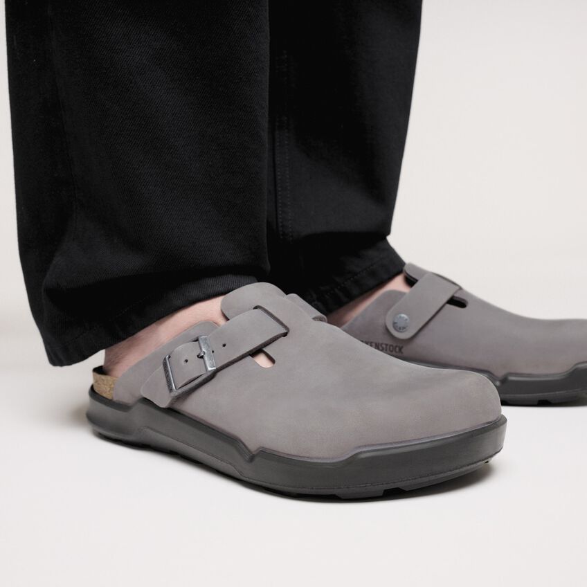 The BIRKENSTOCK Boston is a veritable classic that can easily be worn all year round. It has a legendary status thanks to its sophisticated, individually adjustable design. The sporty Adventure Crosstown version is designed for BIRKENSTOCK fans who are active and looking for an experience. The polyurethane sole is affixed to the footbed in two layers and therefore offers maximum flexibility, grip, and durability. The upper is made from extra thick, oiled nubuck leather with an open-selvage finish.