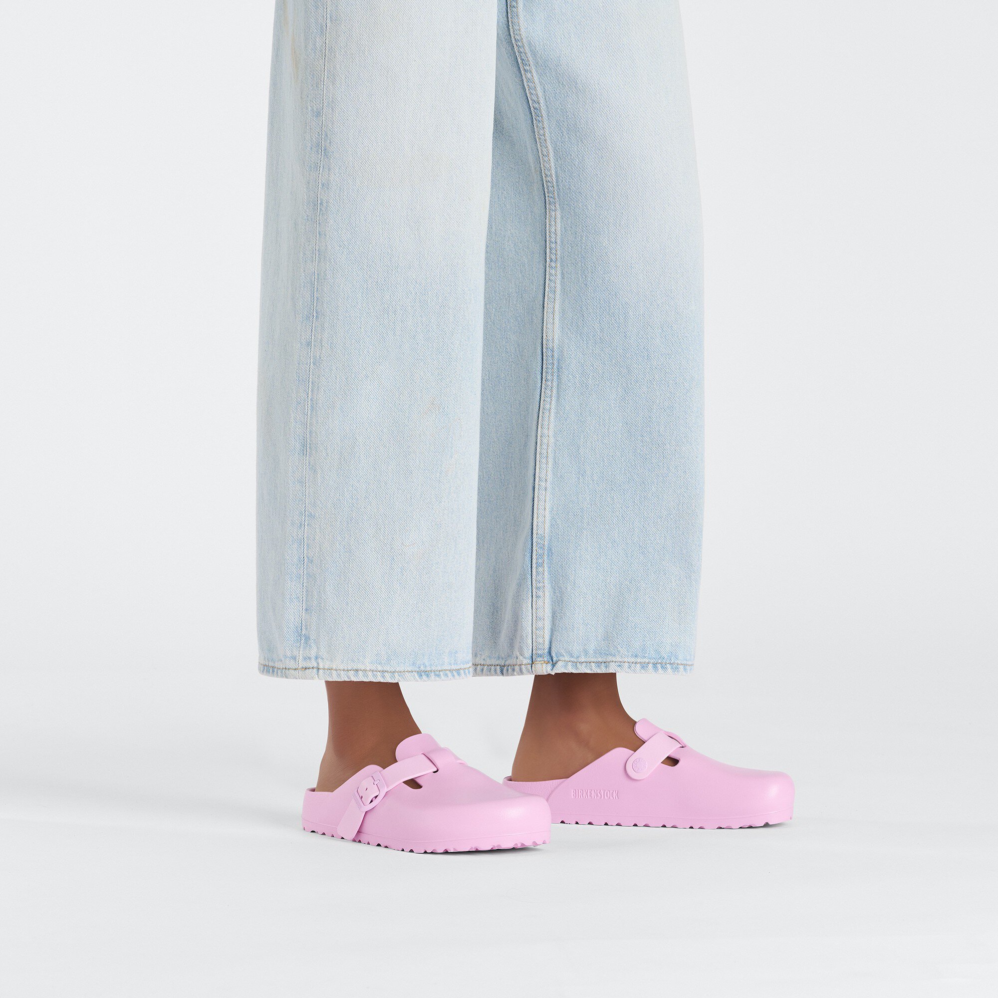 The BIRKENSTOCK Boston is a veritable classic that can easily be worn all year round. The Boston has a legendary status thanks to its sophisticated, individual design. Modeled on the cork sandal, it is made from the ultra lightweight and highly flexible synthetic material EVA. The high-quality, odor-neutral EVA has been tested for harmful substances and combines numerous positive attributes: it is very light, highly elastic, shock-absorbent, waterproof, and skin-friendly.