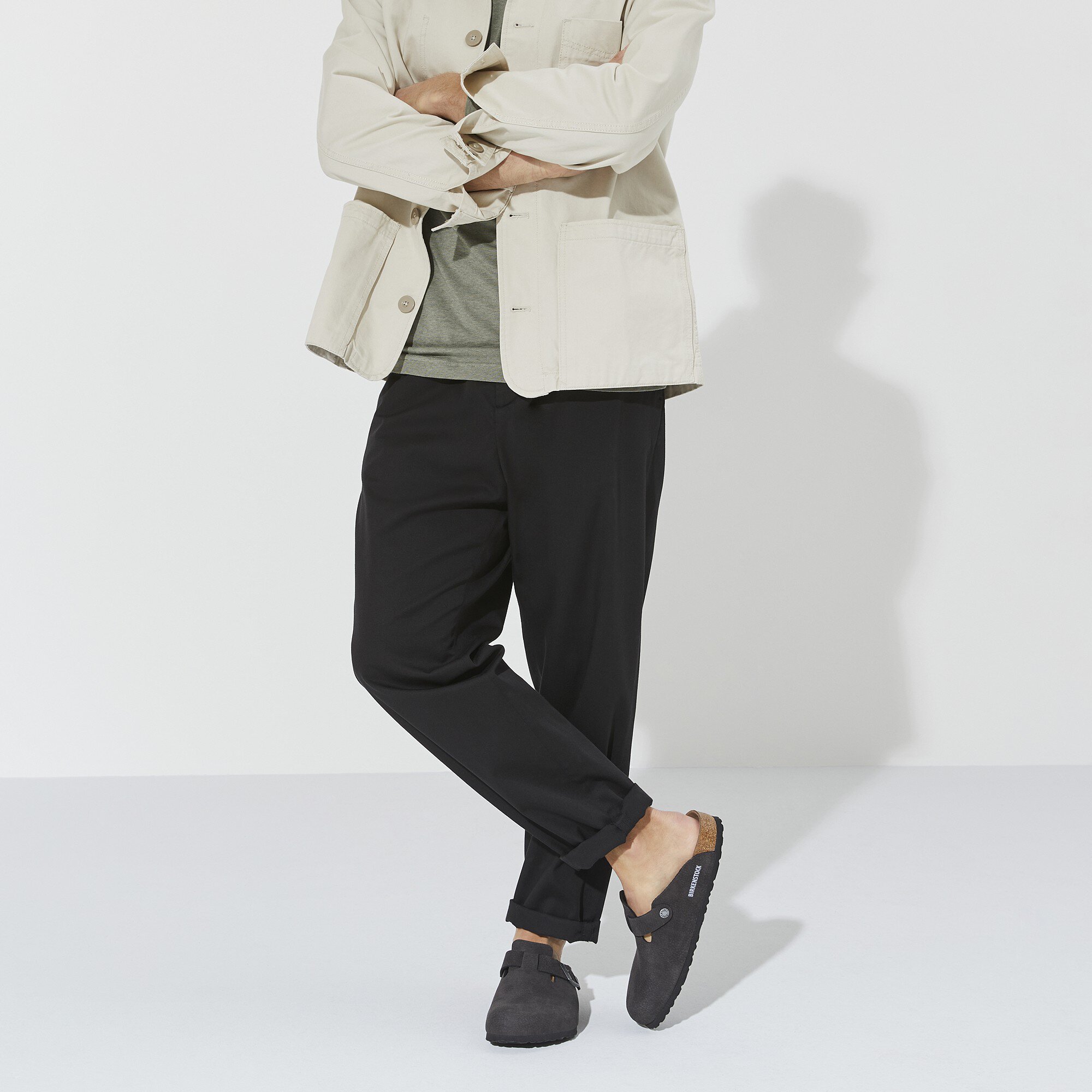 The BIRKENSTOCK Boston clog is a veritable classic that can easily be worn all year round. This popular sandal has been given an update in a new material, with a vegan version now available. It is entirely free of animal products, as verified by independent testing laboratories. The upper is made from a skin-friendly synthetic material. The sandal boasts sophisticated material use with a matte finish that’s reminiscent of natural leather while nevertheless being 100% vegan.