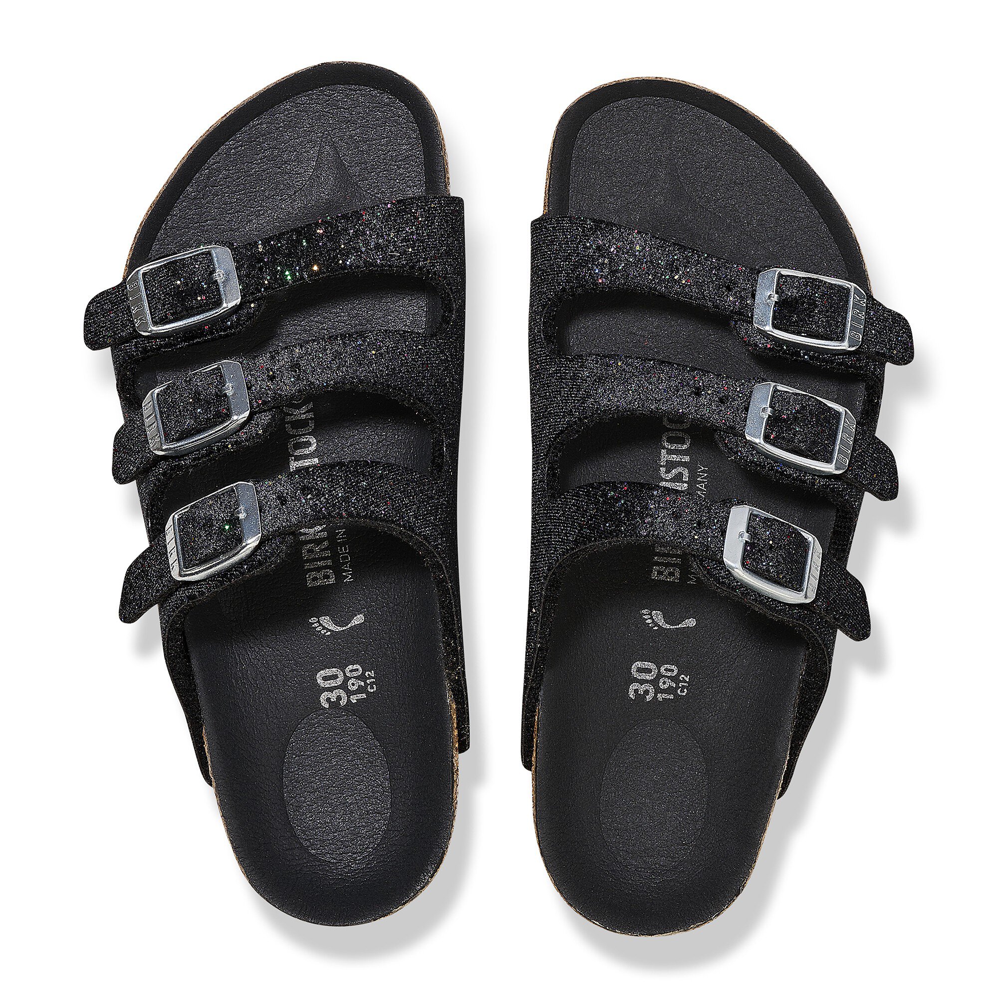 See an active day out in comfort! The BIRKENSTOCK Florida offers good grip and maximum comfort – including during boisterous play. This version is just the thing for fans of all things glitter, boasting a look that makes your feet twinkle like countless tiny stars. The color-coordinated footbed rounds off the shoe’s look of sophistication. The upper is made from smooth fabric.