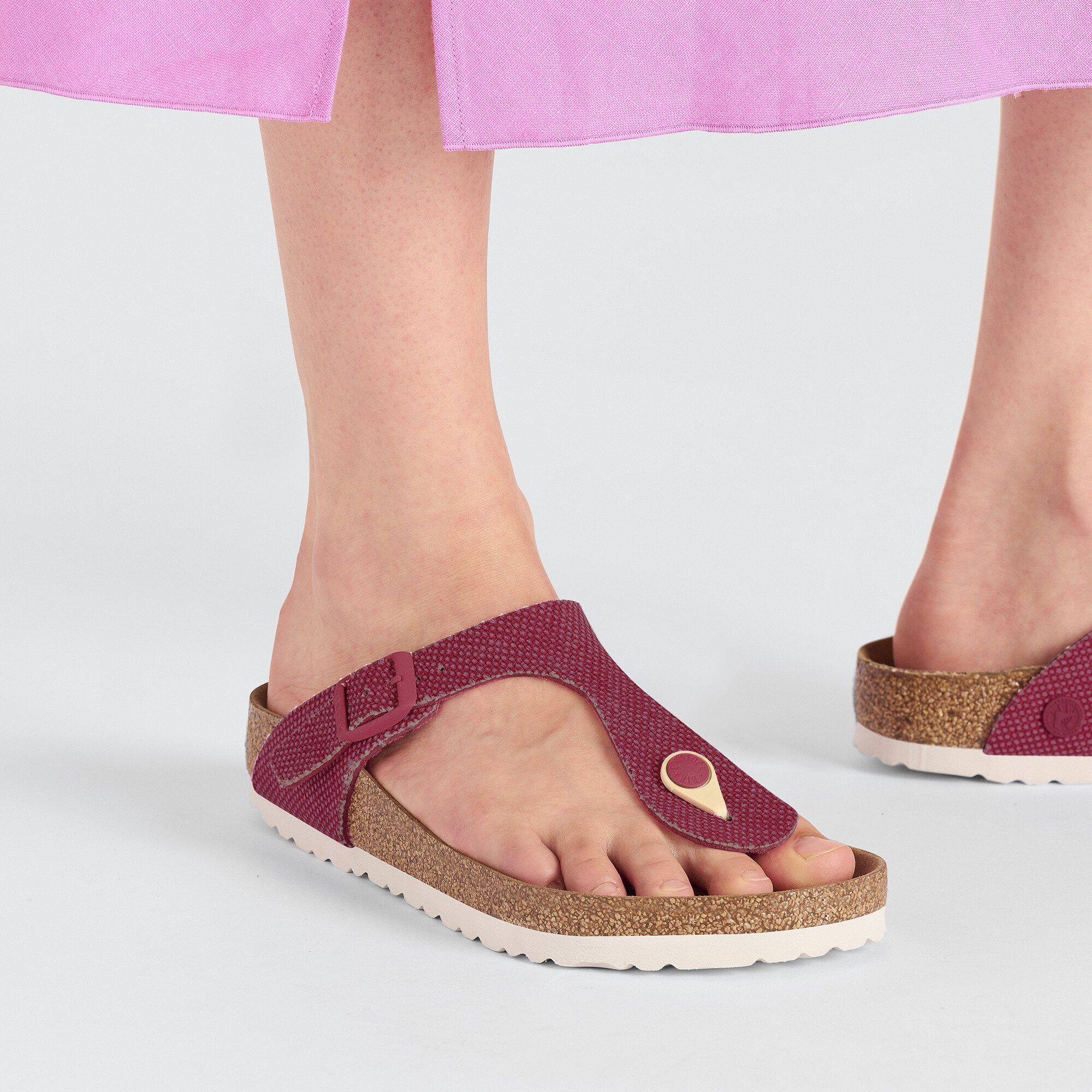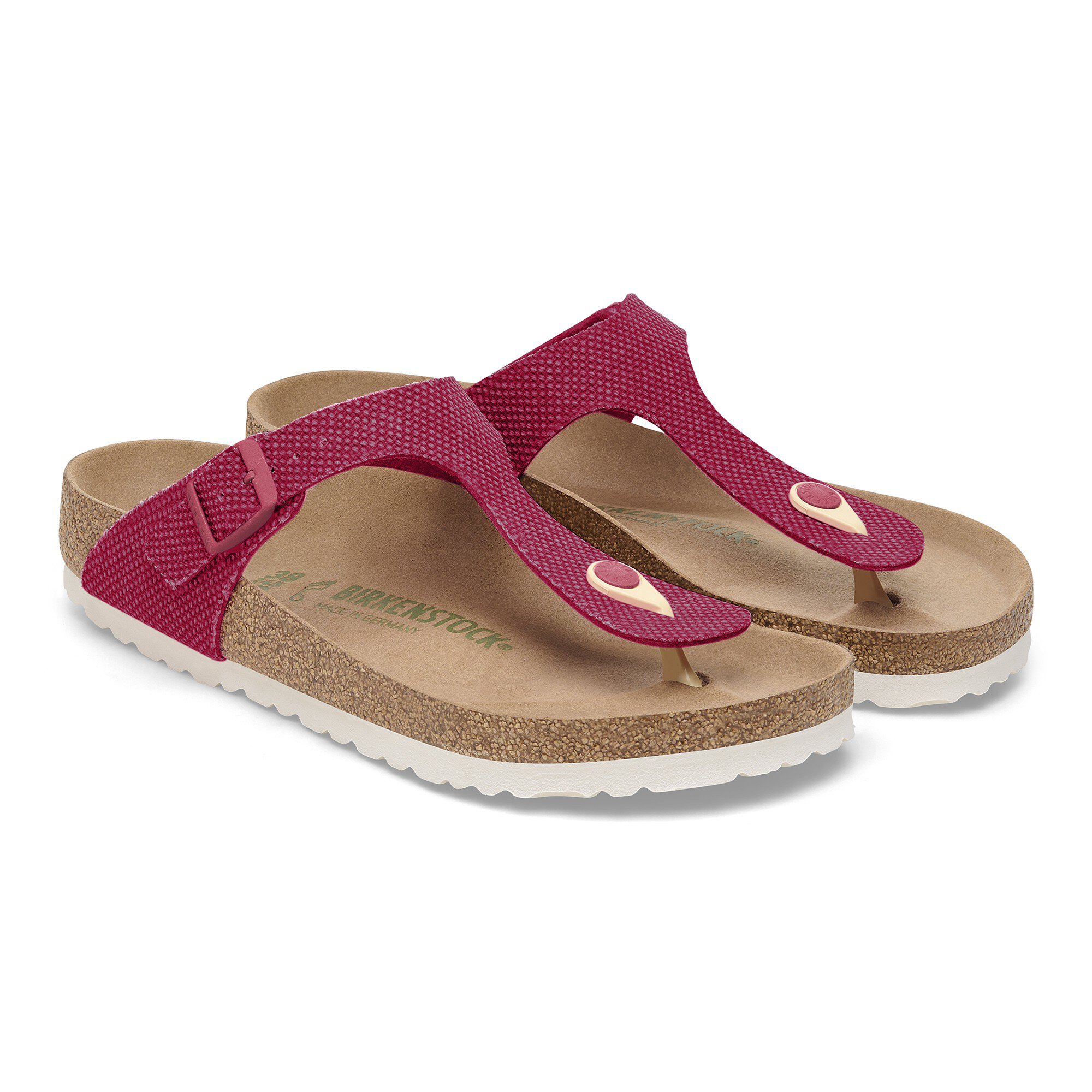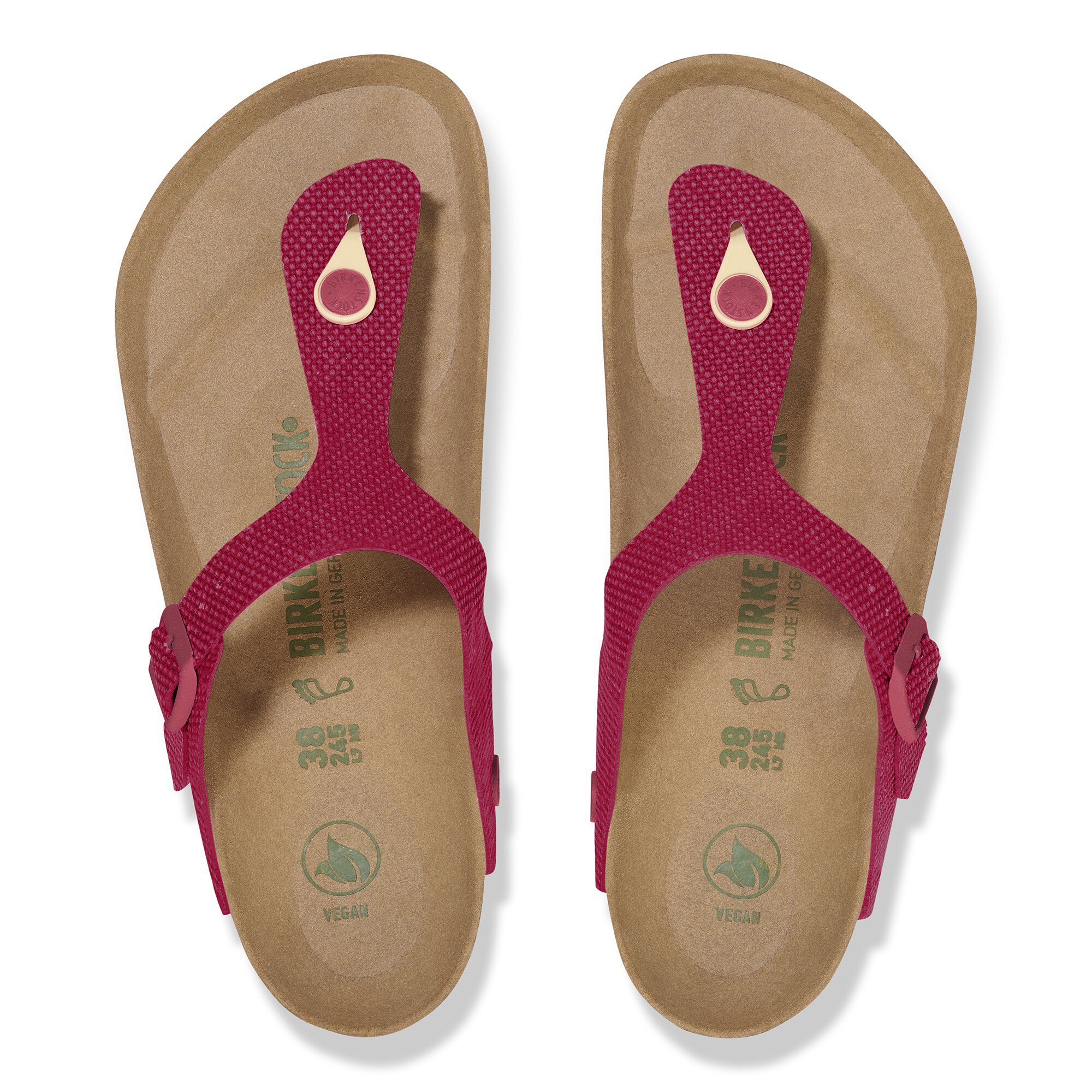 The BIRKENSTOCK Gizeh is a genuine classic that combines optimum grip with minimalist, fashionable design. This version boasts a natural canvas look. It has been given an update in a new material, with a vegan version now available. It is entirely free of animal products, as verified by independent testing laboratories. The upper is made from smooth fabric.
