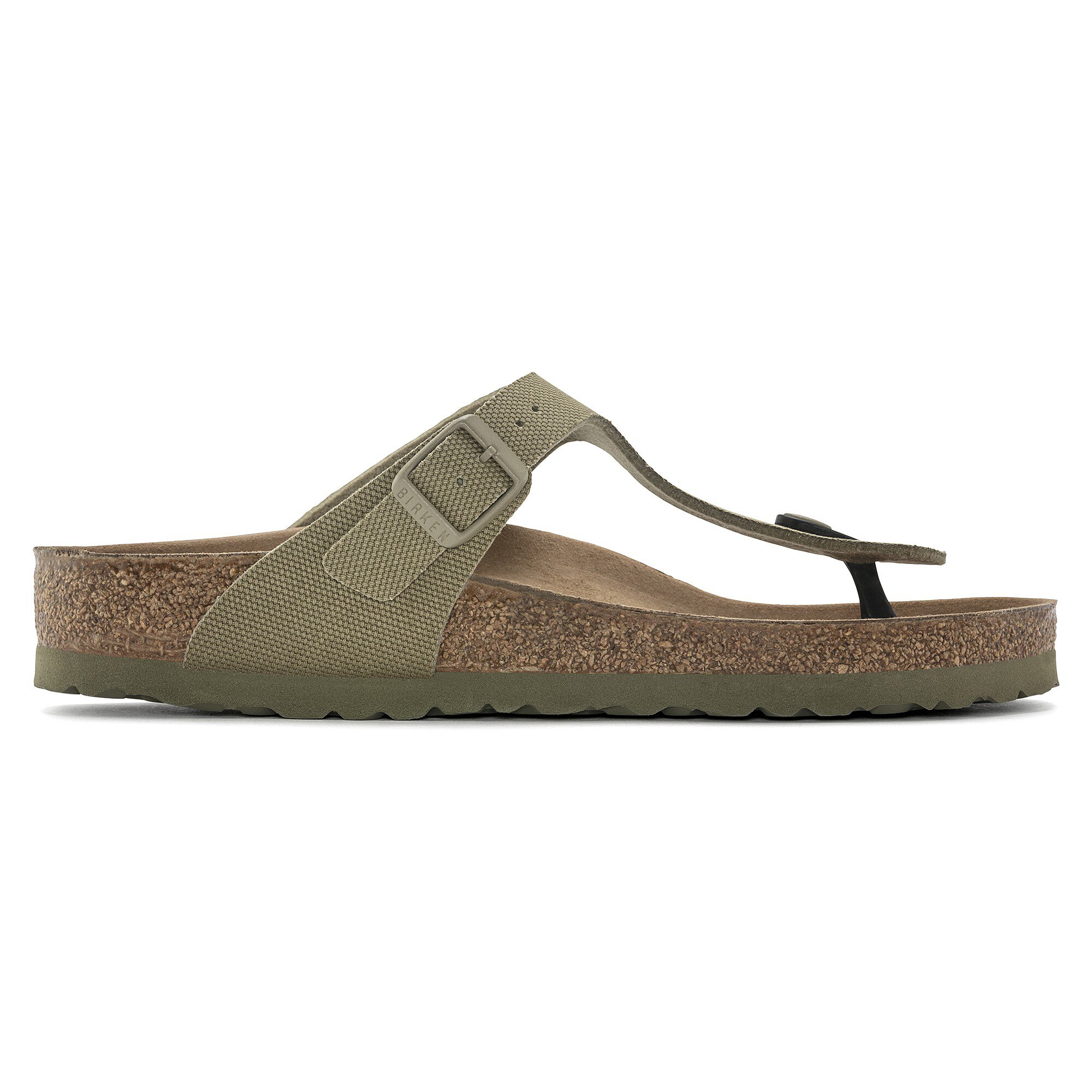 The BIRKENSTOCK Gizeh is a genuine classic that combines optimum grip with minimalist, fashionable design. This popular sandal has been given an update in a new material, with a vegan version now available. It is entirely free of animal products, as verified by independent testing laboratories. The color-coordinated buckles with a textile feel and a matte design as well as the color-coordinated outsole are additional eye-catchers. The upper is made from a soft fabric.