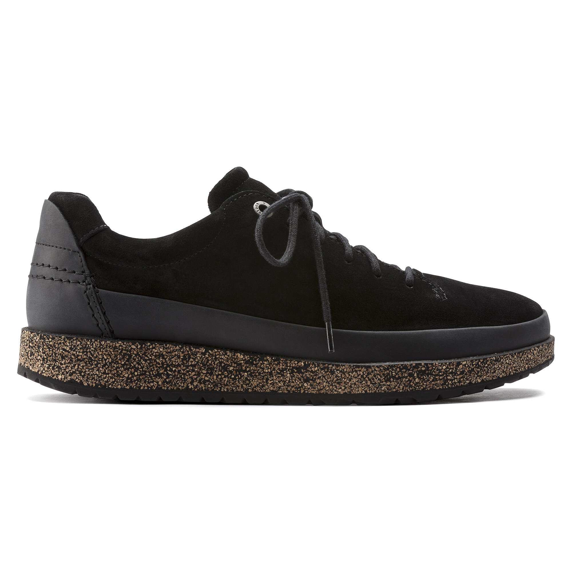 The BIRKENSTOCK Honnef is a lace-up shoe with a wide cork sole. The so-called mudguard at the shoe tip reliably protects against dirt and ensures longevity. The padded heel part adds an extra dose of comfort. The comfortable and light Deep Blue Footbed makes the shoe a perfect 24/7 all-rounder, especially on long and active days. Perfect for your next holiday, extensive walk or city trip. The upper is made from especially soft suede which hugs the foot like a second skin.