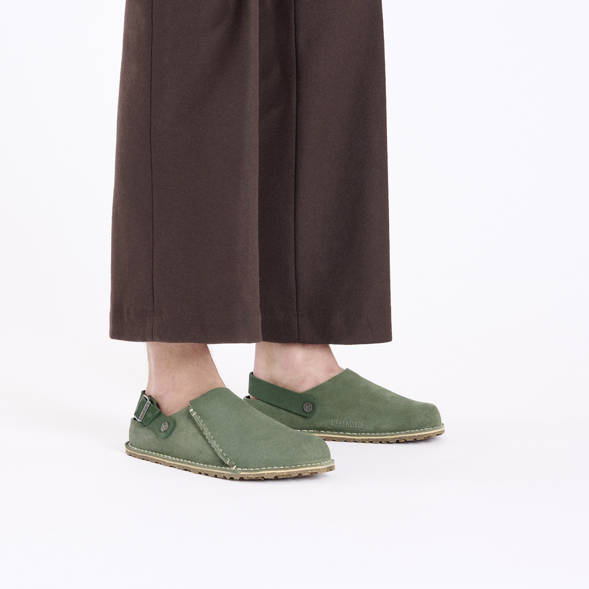The BIRKENSTOCK Lutry is a slipper that can be worn as a backstrap style or as an open clog thanks to the flexible ankle strap. The footbed can be removed so that you can choose between three different footbed versions. This basic version of this design features our Standard Footbed. It replicates the natural print made by a foot walking on sand and will see you through the day in comfort. Its natural design is down to the upper made from especially soft suede, which hugs the foot like a second skin.