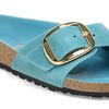The BIRKENSTOCK Madrid is a genuine classic that delights the world of fashion with its minimalist design. The Big Buckle version features a large, elegant pin buckle – a fantastic, striking eye-catcher on this otherwise understated sandal. The lining of the semi-exquisite footbed is covered with soft smooth leather and matches the shoe in color. The upper is made from extra thick, oiled nubuck leather with an open-selvage finish.