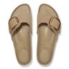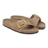 The BIRKENSTOCK Madrid is a genuine classic that delights the world of fashion with its minimalist design. The Big Buckle version features a large, elegant pin buckle – a fantastic, striking eye-catcher on this otherwise understated sandal. The lining of the semi-exquisite footbed is covered with soft smooth leather and matches the shoe in color. The upper is made from extra thick, oiled nubuck leather with an open-selvage finish.