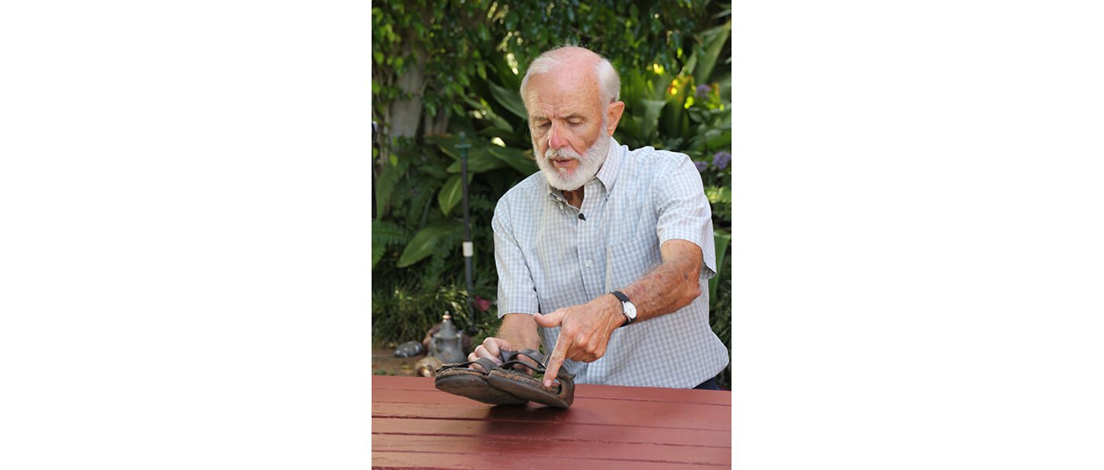 He has repaired them numerous times over the years and has his own unique method of repairing the sole – he grinds wine corks down into a fine cork powder, mixes it with glue, and uses the mixture to fill cracks. “Anyone in the world can buy a brand-new pair of Birkenstocks, but how many people can have this?”, John says proudly.