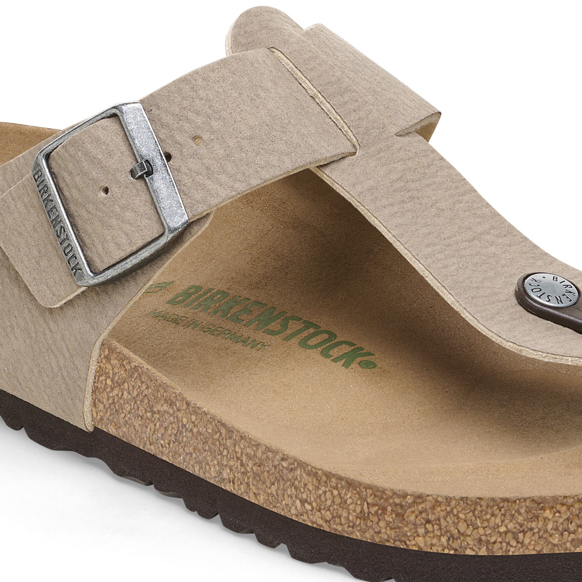 The BIRKENSTOCK Medina is a variation on the classic Gizeh. The thong sandal has two straps that merge with one another to give it a sturdy look and function. This classic model has been given an update in a new material, with a vegan version now available. It is entirely free of animal products, as verified by independent testing laboratories. The upper is made from skin-friendly microfiber. The sandal boasts sophisticated material use with a matte finish that’s reminiscent of natural leather while nevertheless being 100% vegan.