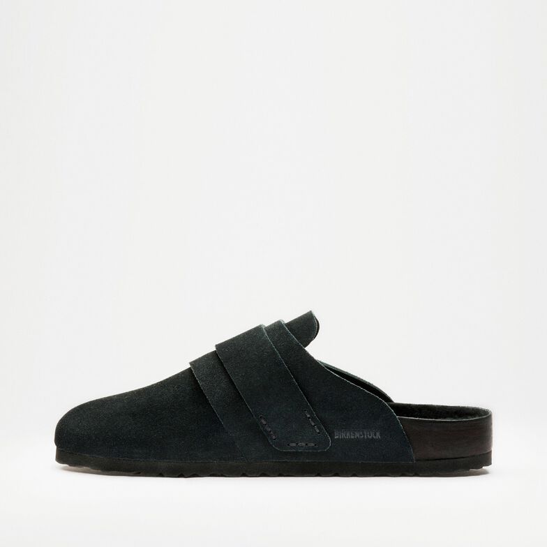 Footbed: Anatomically shaped BIRKENSTOCK cork latex footbed, lined with shearling, edges covered with smooth premium Nappa leather
