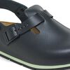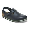 The BIRKENSTOCK classic Tokio Pro has become a true classic among professional shoes, especially for medical professions. The clog is fitted with an anatomically shaped original BIRKENSTOCK cork-latex footbed and a dual-component sole. This comprises a cushioning midsole made from EVA and a nonslip, dynamic, treaded outsole made from genuine rubber. The outsole can furthermore be repaired. Therefore, the clog is particularly well suited to day-to-day wear in hospitals. The upper is made from high-quality, particularly soft natural leather which is coated with polyurethane (PU). The PU coating makes the material more durable and thus particularly long-lasting. The clog offers comfort and safety. The shoe’s enclosed design protects the foot from impacts and the injuries they cause. Thanks to the adjustable strap with a sturdy metal buckle on the instep, it can also be adjusted to the wearer’s feet. A backstrap that can be perfectly fitted to the wearer’s feet thanks to an individually adjustable metal buckle provides the foot with additional grip and a firm step – even when everyday working life gets hectic.