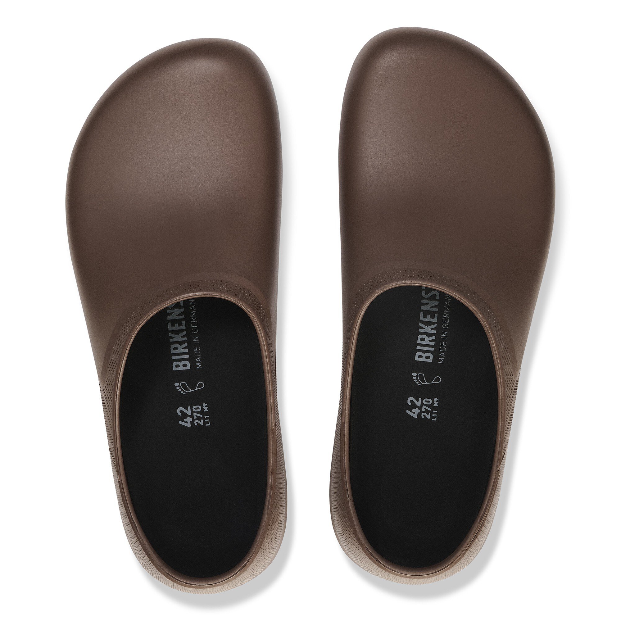 Poliuretanowy chodak Profi Birki 2.0 to idealne rozwiązanie do różnych zawodowych zastosowań. Ten popularny model z podwyższonym tyłem zapewnia kompleksową ochronę stopy i stabilność. Elastyczny materiał PU o gładkiej powierzchni jest odporny na oleje i tłuszcze, a także wodoodporny i odporny na zabrudzenia, co sprawia, że Profi Birki 2.0 jest szczególnie polecany do pracy w kuchni i gastronomii. Wysokie standardy bezpieczeństwa w zakresie konstrukcji podeszwy to jeden z wyróżników marki BIRKENSTOCK. Elastyczna, bezszwowa podeszwa z PU o nieco głębszym bieżniku zapewnia doskonałą przyczepność na różnych rodzajach nawierzchni. Osoby, które na co dzień spędzają długie godziny na nogach, docenią wysoki komfort noszenia, który zapewnia wymienna, pokryta mikrofibrą i anatomicznie ukształtowana wkładka BIRKENSTOCK. Dzięki temu Profi Birki 2.0 jest również idealny do stosowania z własnymi, indywidualnie dobranymi wkładkami. Dodatkowo chodaki można prać w temperaturze do 80°C, a wkładki z poliuretanu do 60°C, co zapewnia wysoki poziom higieny.