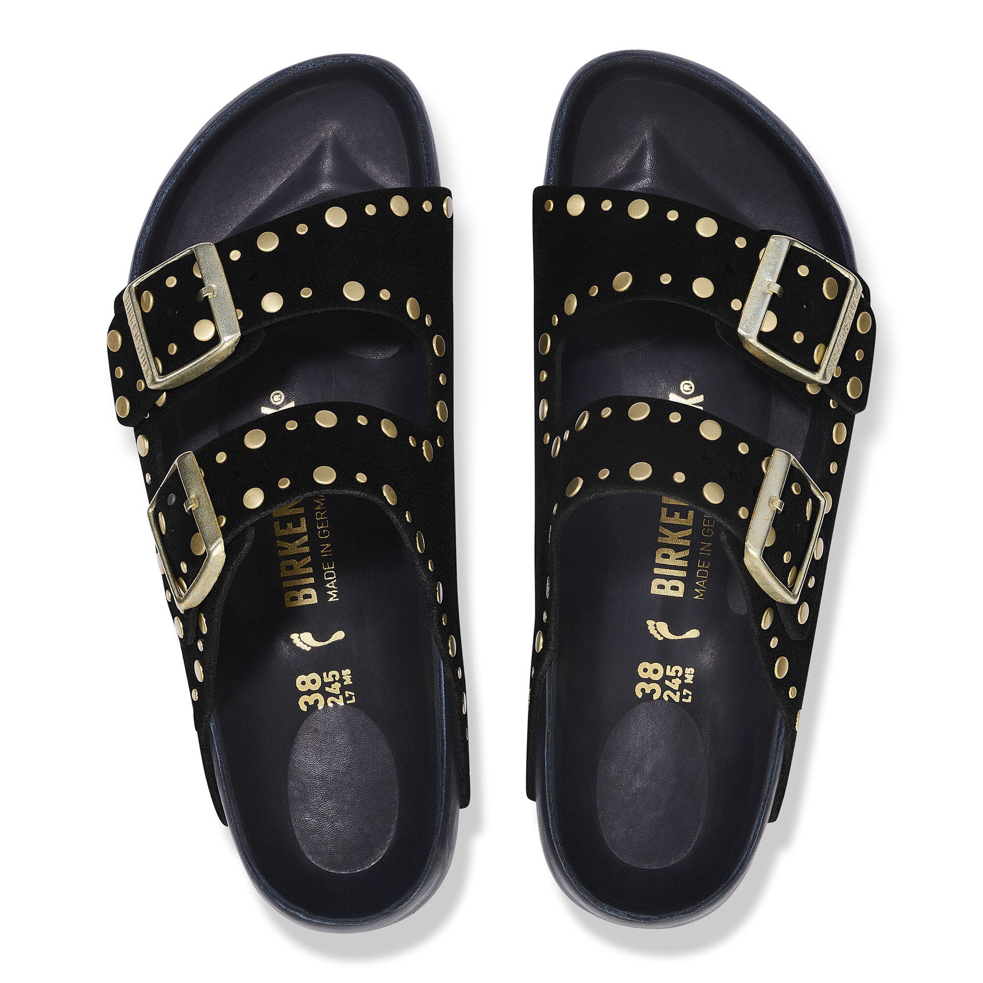 The BIRKENSTOCK Arizona is a genuine classic that has been delighting both men and women for decades. This simple sandal with two straps stands for timeless design and has long held cult status thanks to its comfort factor. The exquisite footbed is fully lined with soft piumato leather, making it exceptionally comfortable. This version features precisely positioned rivets with no back which are made to sit firmly in the leather in an elaborate production process without going too deep, making them unnoticeable when the shoe is worn. It’s quite an eye-catcher! The upper is made from especially soft suede which hugs the foot like a second skin.
