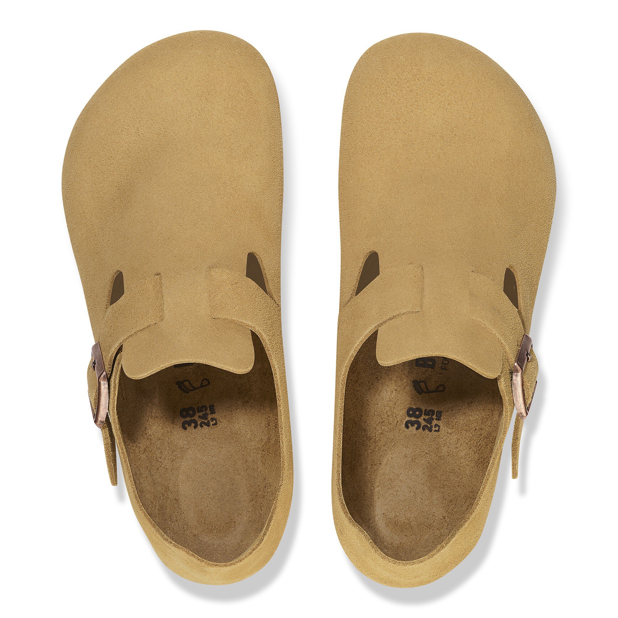 The BIRKENSTOCK London is a variation on the classic Boston shoe. The raised heel section is characteristic of this simple low shoe with no stitching. It boasts a natural, rustic look and an open-selvage, unlined finish. Its natural design is also down to the upper made from especially soft suede, which hugs the foot like a second skin.