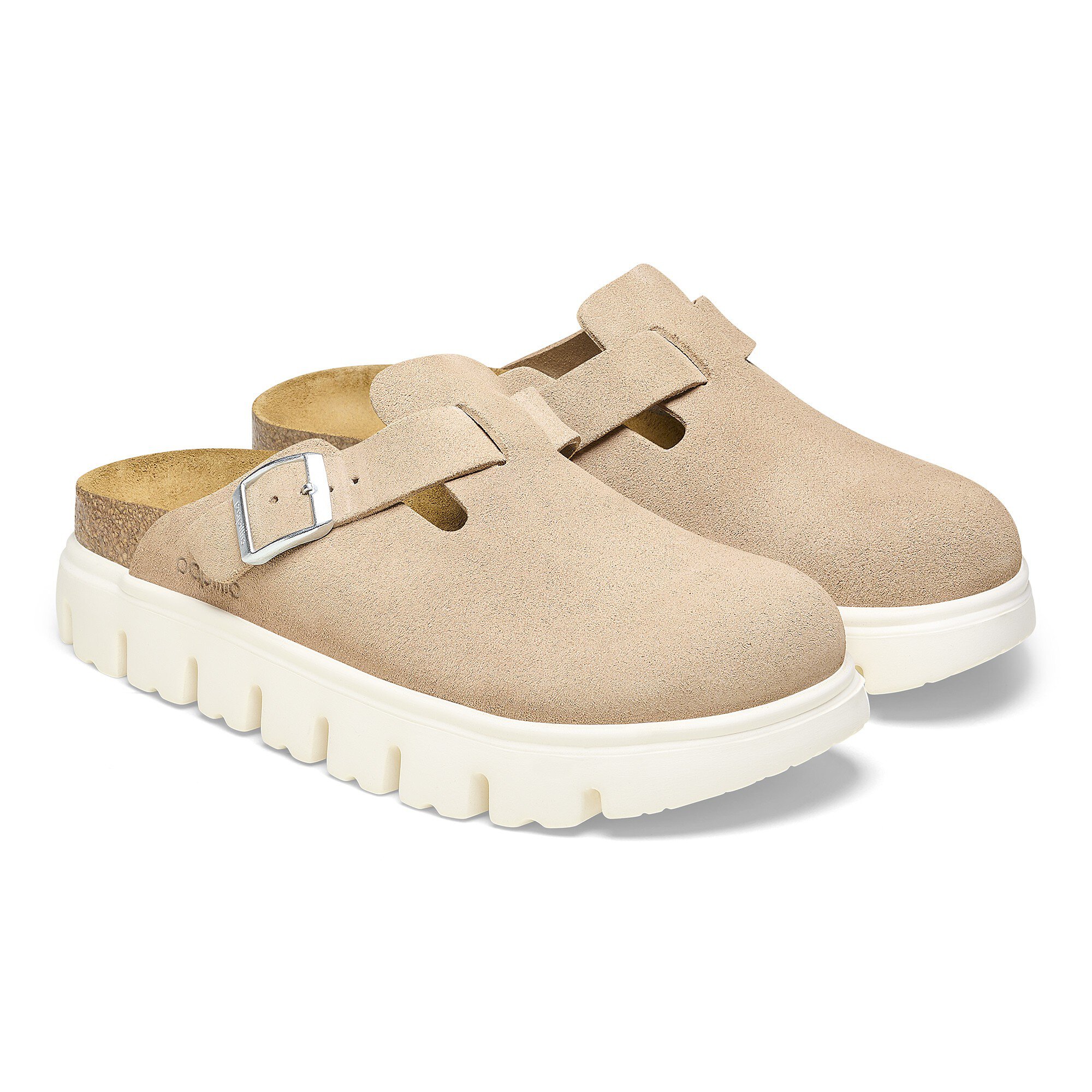 BIRKENSTOCKS toffelmodell Boston är en äkta klassiker som utan problem kan användas året runt. I denna variant presenterar Papillio en toffellmodell med en trendig platåsula med extra djupa profillinjer. Tack vare den lätt slipade formen ger modellen maximal komfort. Yttermaterialet består av extra mjuk mocka som formar sig som en andra hud mot foten.