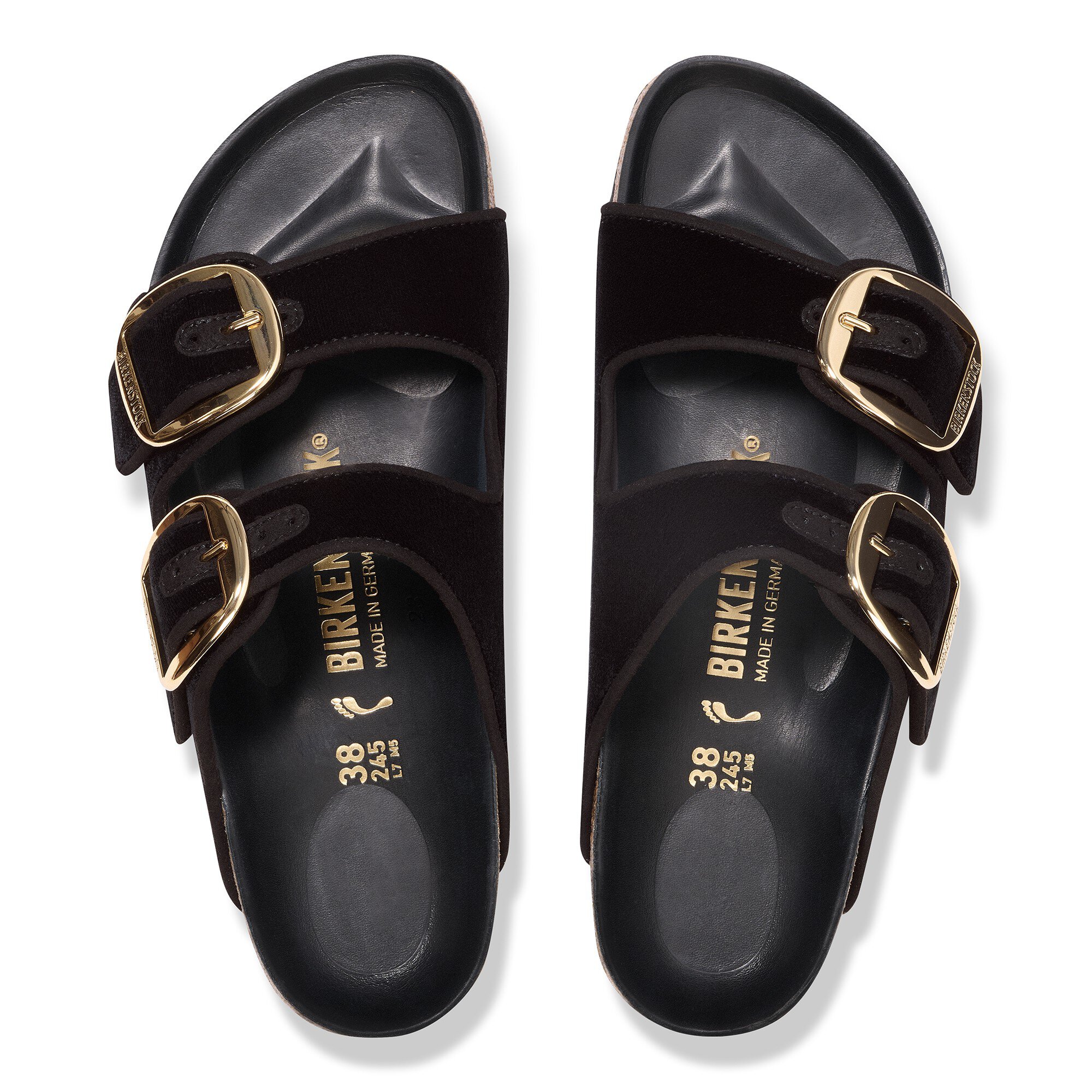 The BIRKENSTOCK Arizona is a genuine classic that has been delighting both men and women for decades. This simple sandal with two straps stands for timeless design and has long held cult status thanks to its comfort factor. This version brings two popular designs together. It is made of fine velvet and boasts a big, elegant pin buckle. The exquisite footbed is fully lined with soft piumato leather, making it exceptionally comfortable.
