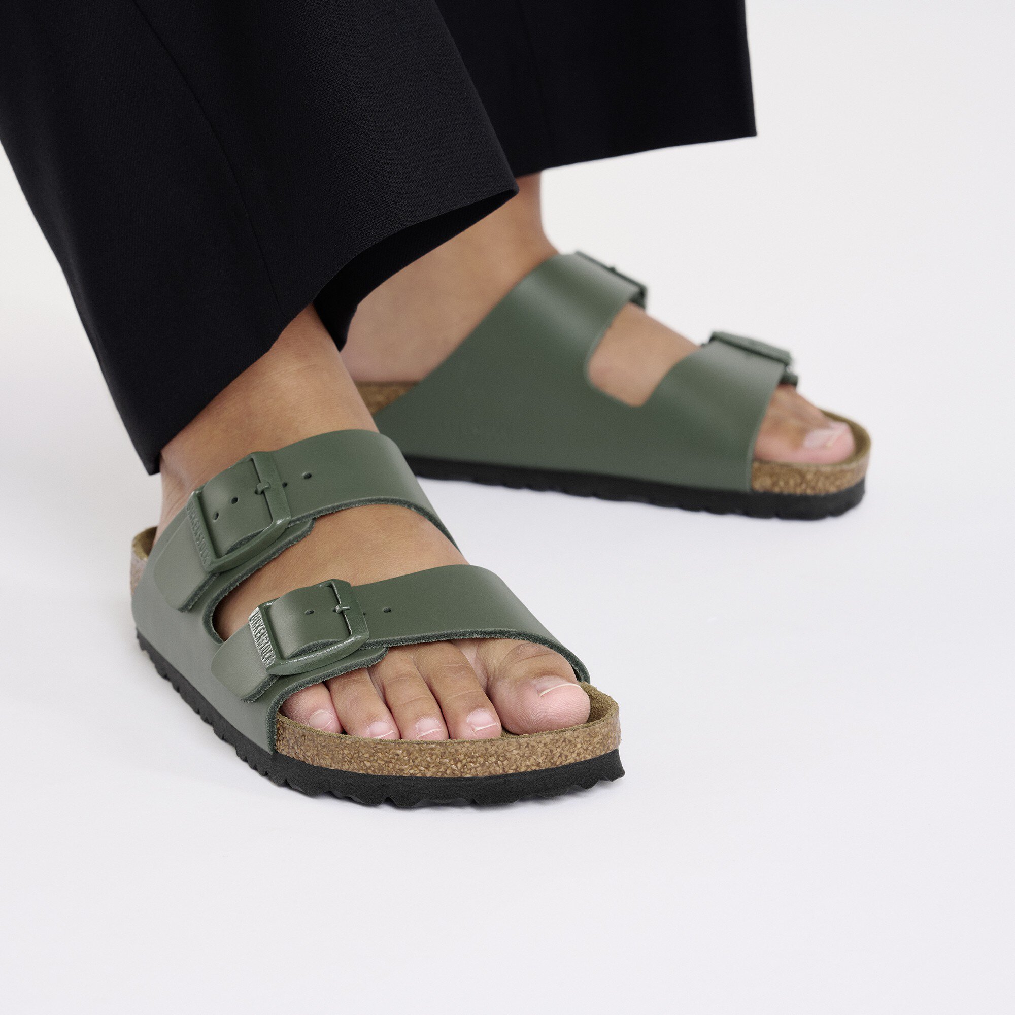 The BIRKENSTOCK Arizona is a genuine classic. This individually adjustable unisex two-strap sandal is now available in a uniquely sophisticated leather version. The leather features an open selvedge finish, emphasizing the handcrafted and natural look of these stylish sandals.
