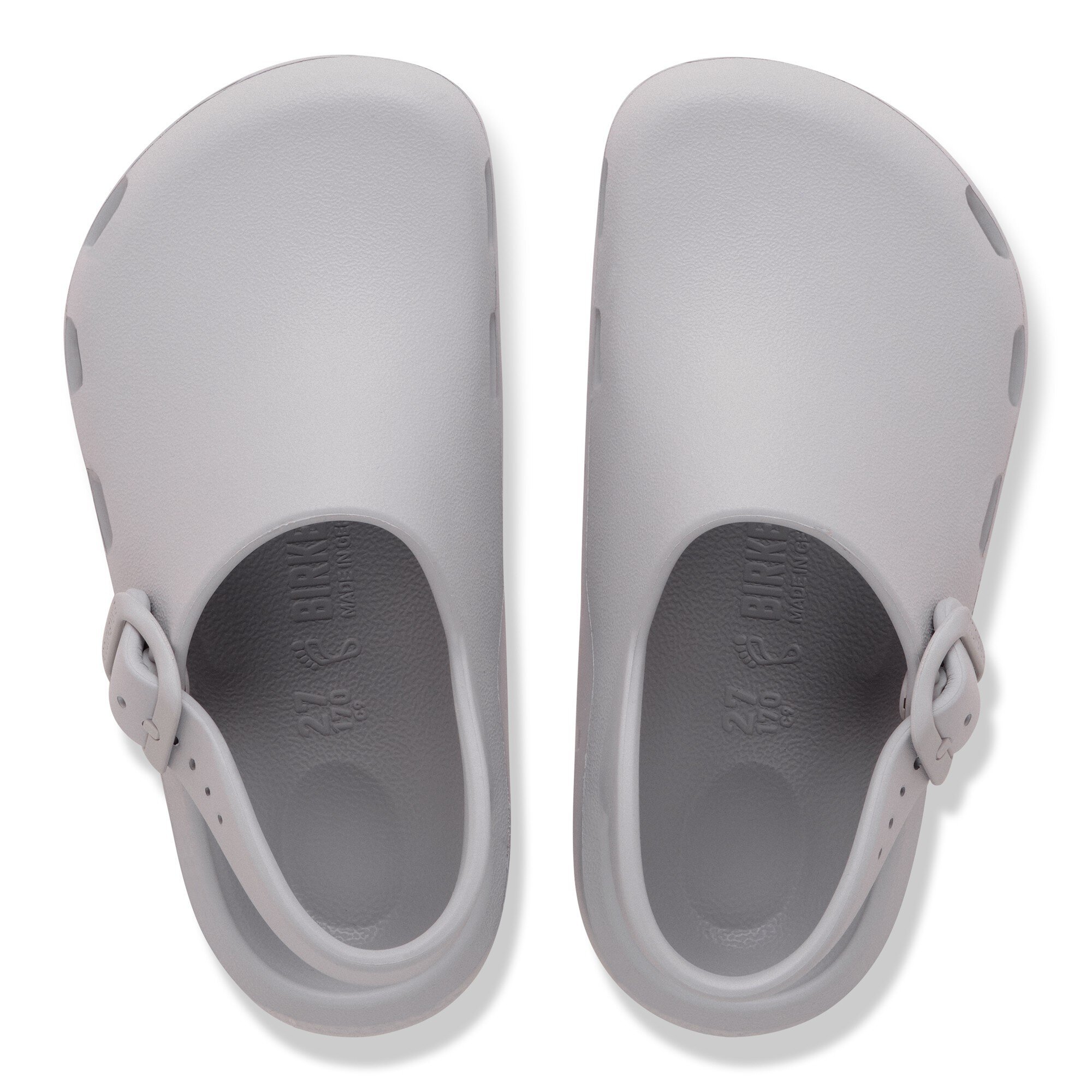 The BIRKENSTOCK Birki Flow is a veritable classic that can easily be worn all year round. The large air inlets in the clog keep the foot climate permanently fresh. The ankle strap features an adjustable pin buckle and its length can be adjusted individually. Since the ankle strap firmly fixed and cannot be flipped to the front, it is easy to use and provides a secure fit – ideal for active children. Modeled on the cork sandal, it is made from the ultra-lightweight and highly flexible synthetic material EVA. The high-quality, odor-neutral EVA has been tested for harmful substances and combines numerous positive attributes: it is highly fashionable, light, highly elastic, water-resistant, and skin-friendly.