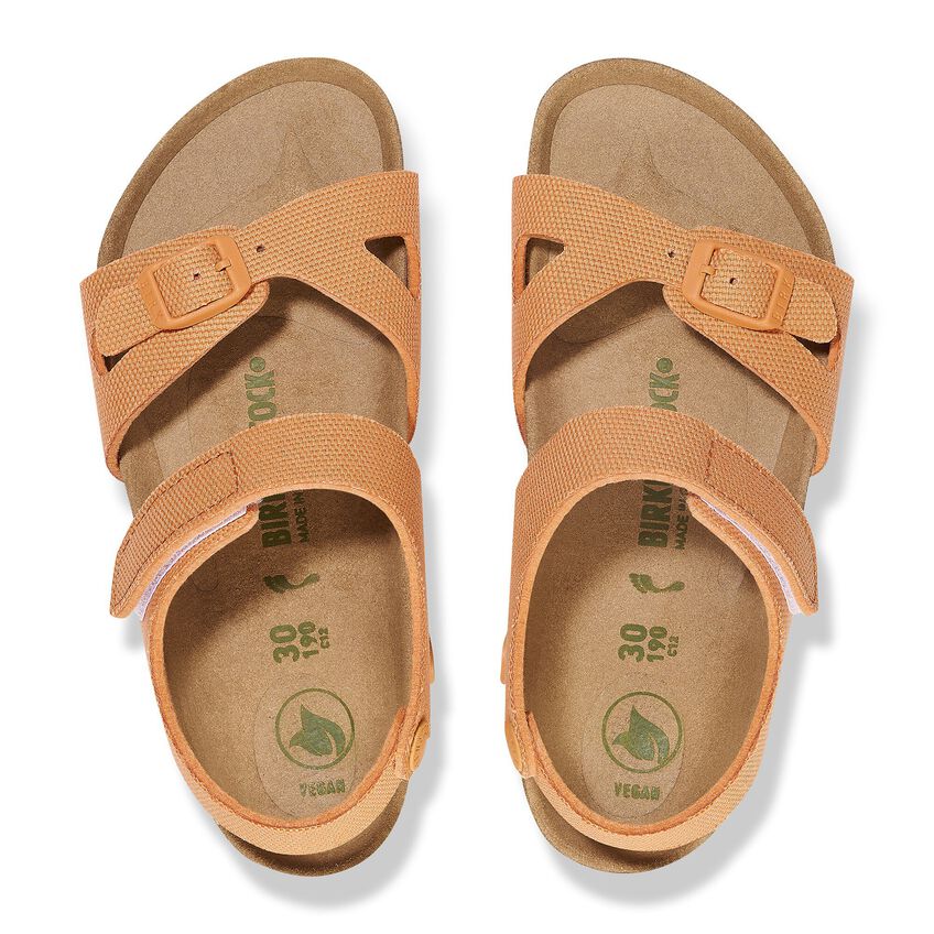 The BIRKENSTOCK Colorado is a variation on the classic Rio. The buckle at the ankle strap has been replaced by a touch fastener, allowing it to be put on and taken off in an instant – perfect for kids’ impatient feet! This popular sandal has been given an update in a new material, with a vegan version now available. It is entirely free of animal products, as verified by independent testing laboratories. The upper is made from smooth fabric.
