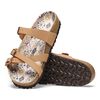 - Details: three straps, each with an individually adjustable metal pin buckle; printed footbed; vegan