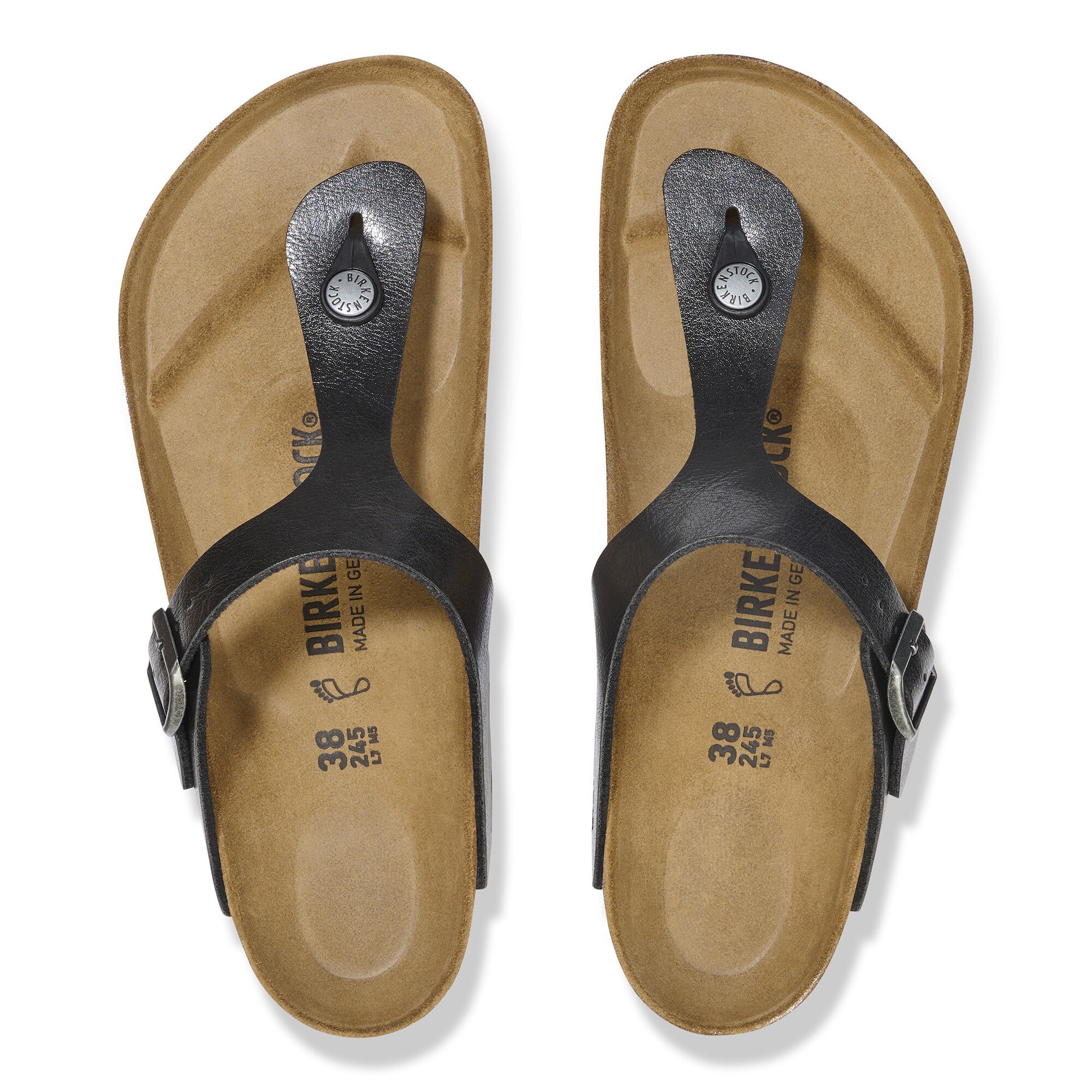 The BIRKENSTOCK Gizeh is a genuine classic and a stylish all-rounder. Our elegant thong sandal combines optimum grip with minimalist, fashionable design. Here, we see the sandal with a silky sheen finish. The upper is made from the skin-friendly, hard-wearing synthetic material Birko-Flor®.