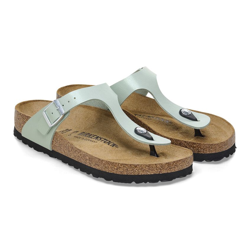 The BIRKENSTOCK Gizeh is a genuine classic that combines optimum grip with minimalist, fashionable design. Here, we see the sandal with a silky sheen finish. The color-coordinated details round off the shoe’s look of sophistication. The upper is made from the skin-friendly, hard-wearing synthetic material Birko-Flor®.