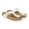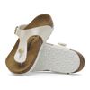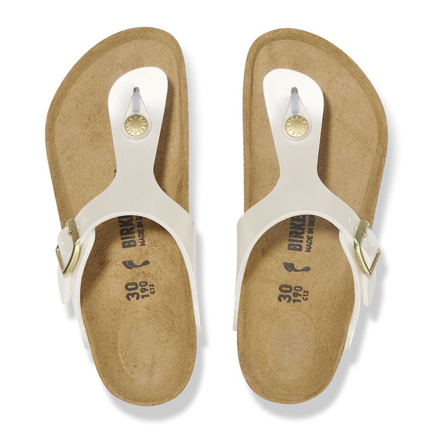 The BIRKENSTOCK Gizeh is a genuine classic that combines optimum grip with fashionable design to really turn heads at school. This sandal was reinterpreted in an extravagant electric metallic look. The reflective film makes this classic model dazzle and is sure to make any outfit turn heads. The color-coordinated outsole and the buckles round off the shoe’s look of sophistication. The upper is made from the skin-friendly, hard-wearing synthetic material Birko-Flor®.