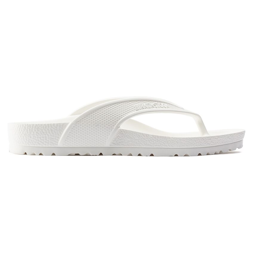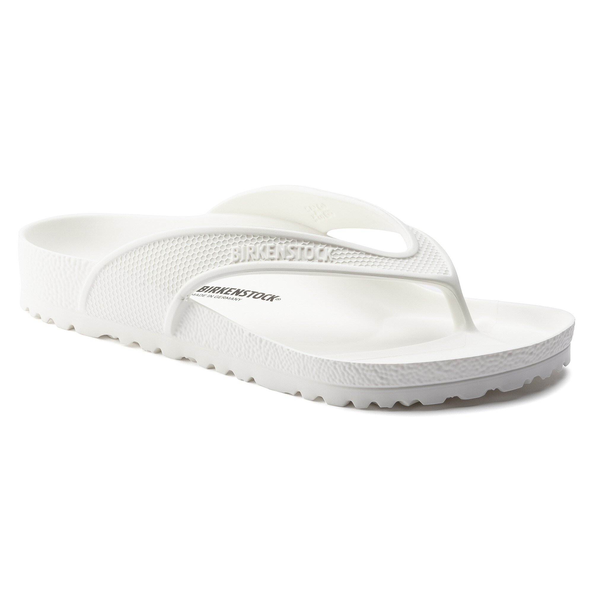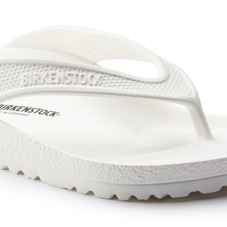The BIRKENSTOCK Honolulu is a sporty thong sandal with a hexagon pattern. It’s perfect for anyone who is looking in particular for function and comfort. Modeled on the cork sandal, this sandal is made from especially light and flexible EVA. This high-quality, odor-neutral synthetic material which has been tested for harmful substances is shock-absorbent, waterproof, and skin-friendly. It’s therefore perfect for wearing at the beach, in the garden, or in wellness and spa areas.