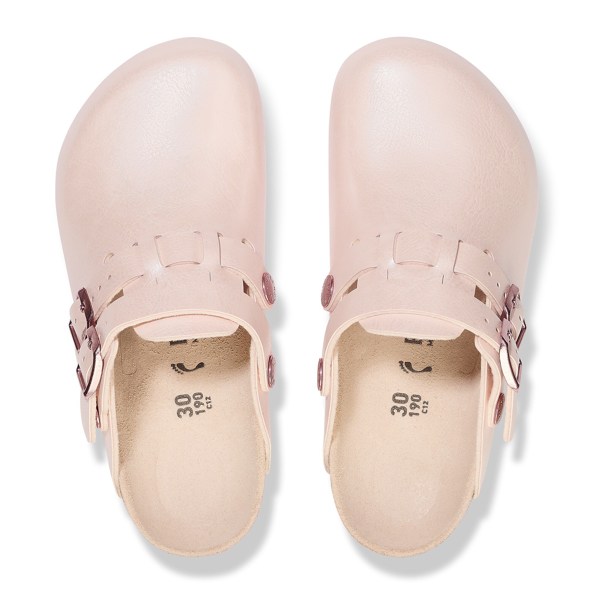 A comfy all-rounder! The BIRKENSTOCK Kay clog can be worn flexibly and offers additional grip at the heel if needed. Here, we see the sandal with a silky sheen finish. The color-coordinated footbed rounds off the shoe’s look of sophistication. The upper is made from the skin-friendly, hard-wearing synthetic material Birko-Flor®. The Kay clog is therefore a suitable model for active kids – there’s little chance of shoes getting lost.