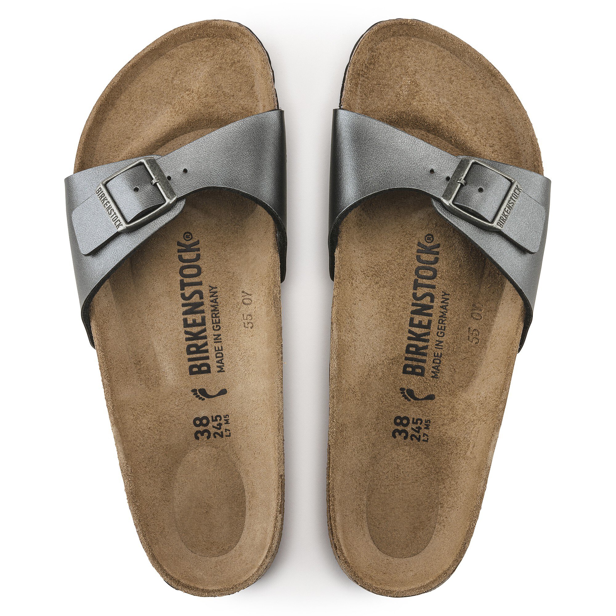 The BIRKENSTOCK Madrid is the oldest member of the family of models, making it a veritable classic. Launched as a “gymnastics sandal” half a century ago, this simple single-strap model has gone on to become a firm fashion favorite. This version features a metallic glossy effect. The upper is made from the skin-friendly, hard-wearing synthetic material Birko-Flor®.