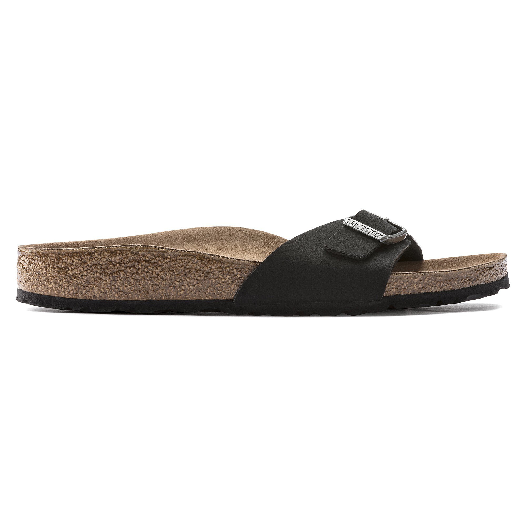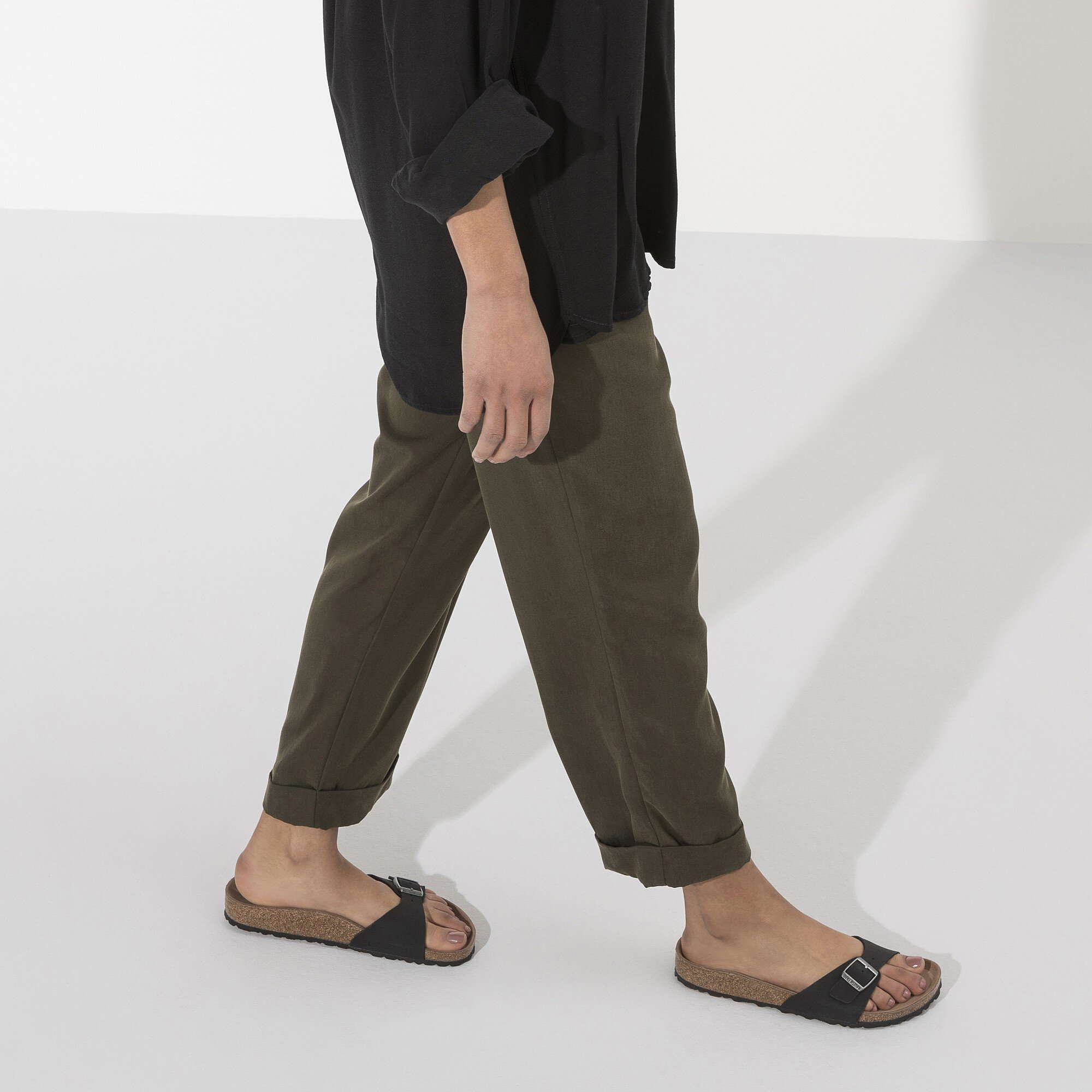 The BIRKENSTOCK Madrid is a genuine classic that delights the world of fashion with its minimalist design. This popular sandal has been given an update in a new material, with a vegan version now available. It is entirely free of animal products, as verified by independent testing laboratories. The upper is made from the skin-friendly, hard-wearing synthetic material Birko-Flor® in a sophisticated nubuck look which boasts a texture and color that could almost be mistaken for real leather.