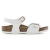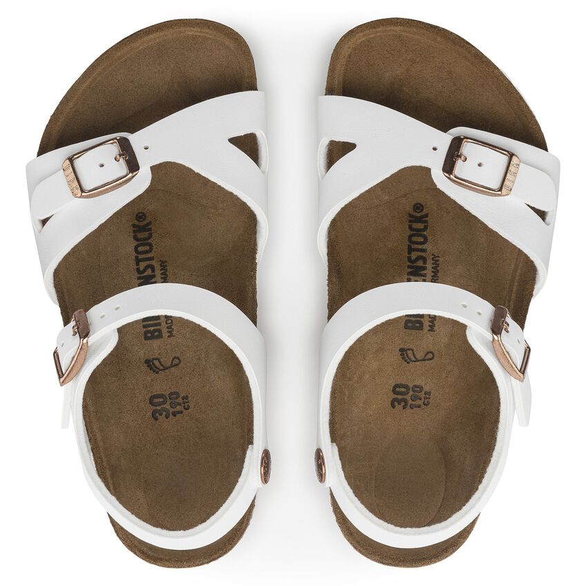 The BIRKENSTOCK Rio is a sporty, elegant sandal with an ankle strap that offers reliable and comfortable grip – also during rough-and-tumble play. The upper is made from the skin-friendly, hard-wearing synthetic material Birko-Flor®.