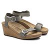 Less is more! With its simple look and top grip thanks to an ankle strap, the Soley wedge heel sandal from Papillio is popular with women who want both high fashion and comfort. The delicate circular buckles are an elegant eye-catcher. The upper is made from high-quality, soft nubuck leather that boasts a natural, rustic appearance.