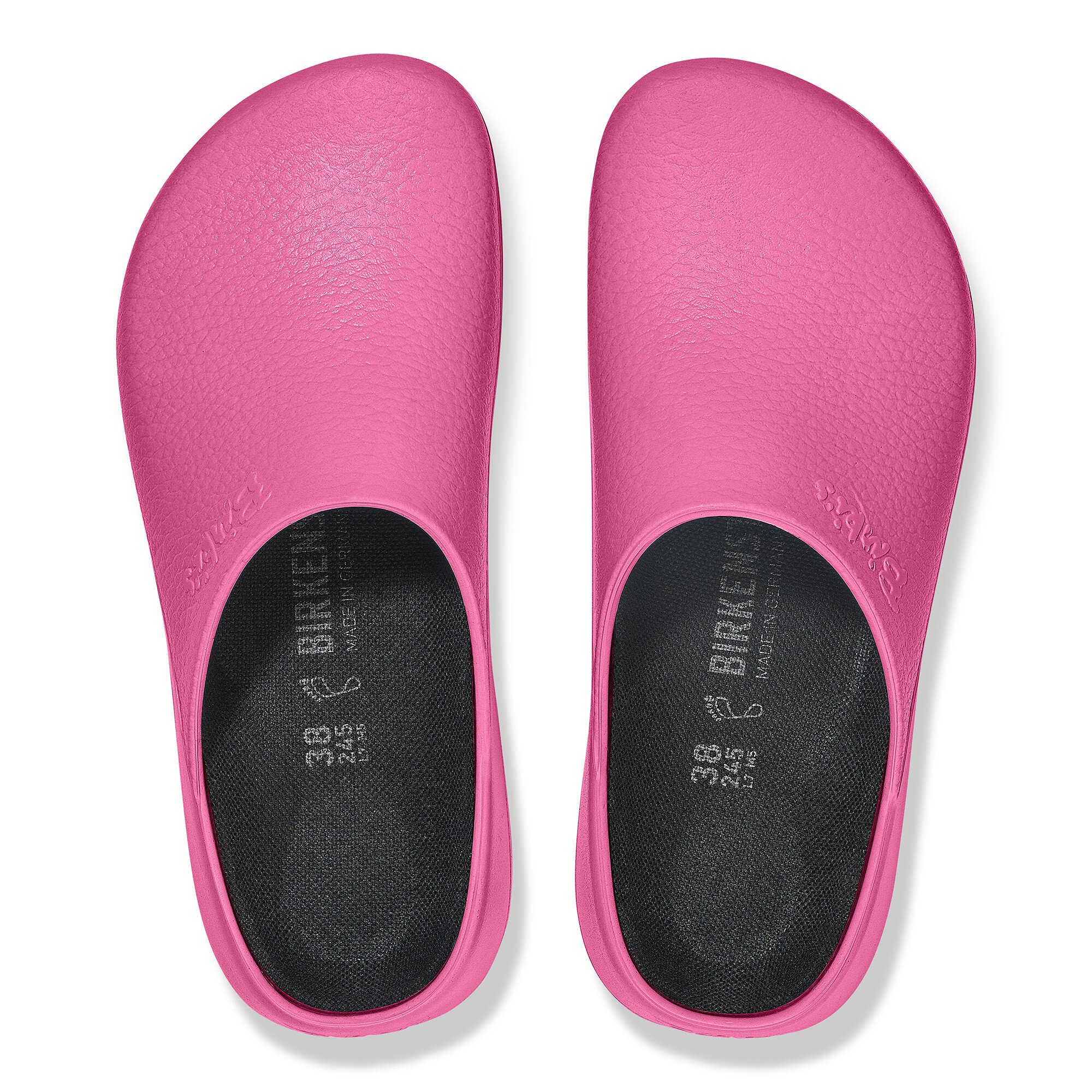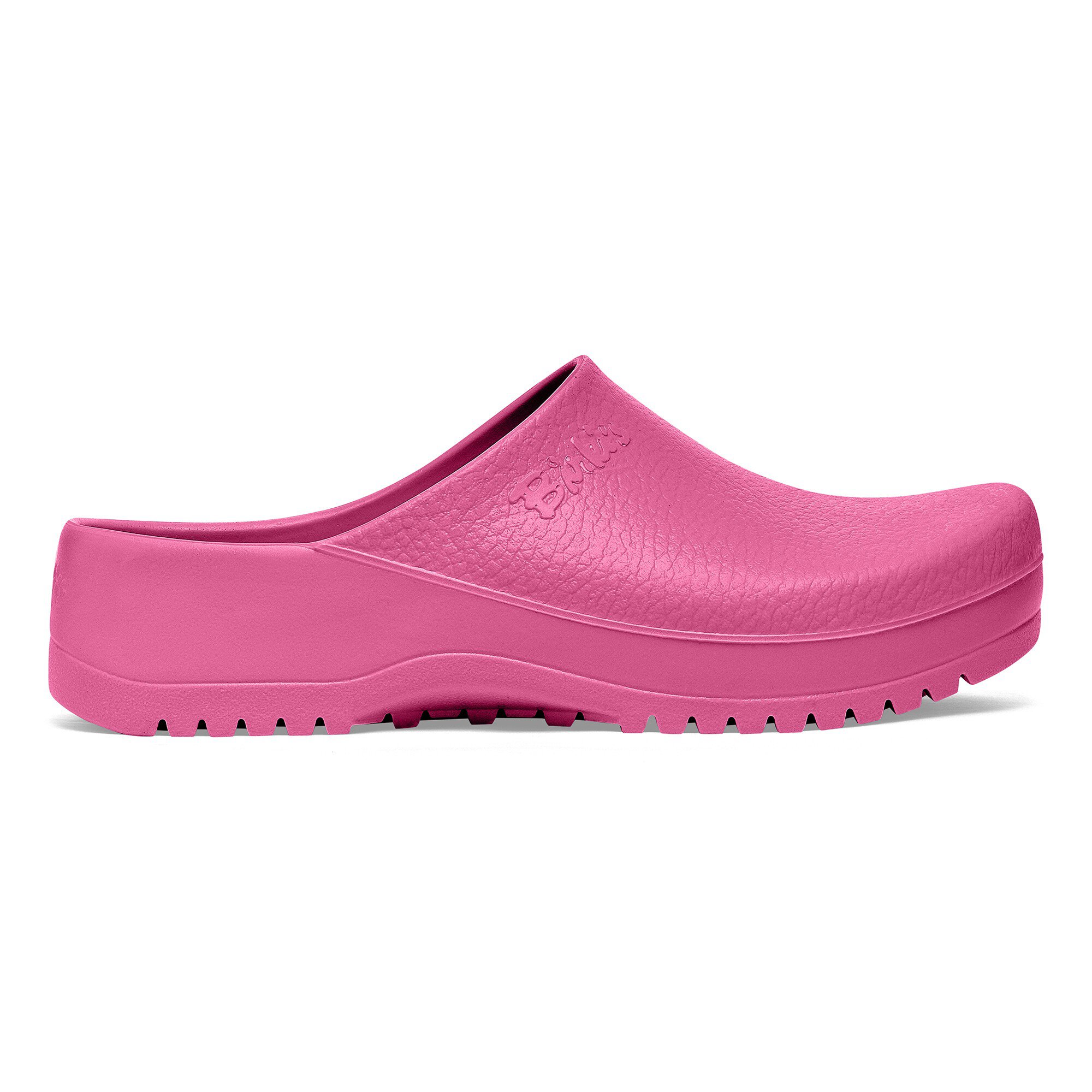 The PU (polyurethane) clog Super Birki is suitable for leisure, garden, and professional wear. This compact shoe made from water-resistant and dirt-repellent polyurethane is also oil- and grease-resistant. This extremely resilient material is washable at up to 60° Celsius and can be efficiently disinfected. The anatomically shaped cork-latex footbed is lined with a moisture-wicking fabric. It can be removed for easy cleaning and is washable at up to 30° Celsius.