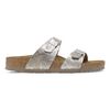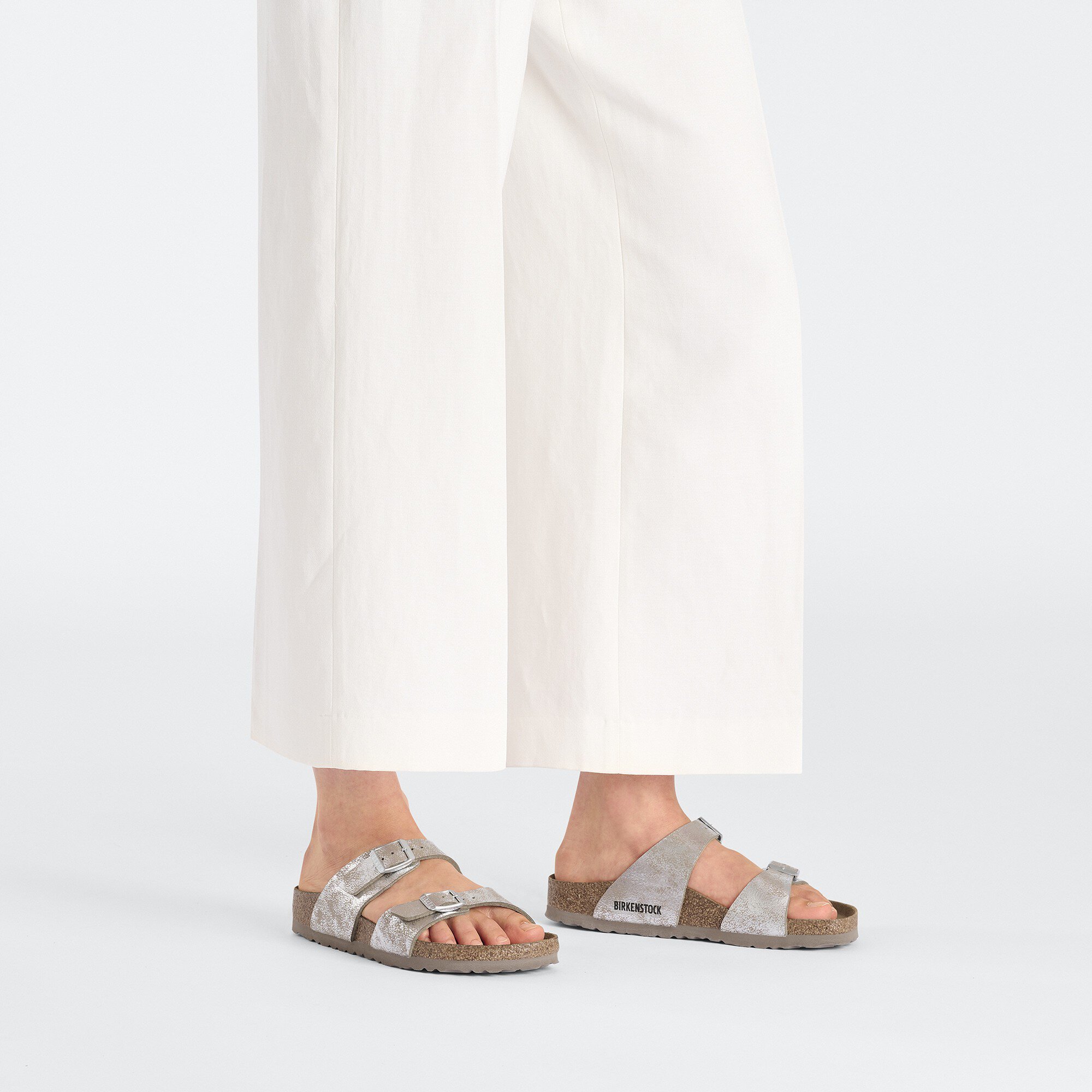 The BIRKENSTOCK Sydney proves that fashion and functionality can go hand in hand. With its two simple straps, it’s a real hit with women who want both high fashion and comfort. This model comes in a faded metallic look with a subtle vintage effect that can vary from shoe to shoe and which comes to the fore the more it is worn. The color-coordinated outsole rounds off the shoe’s look of sophistication. The upper is made from a skin-friendly synthetic material.