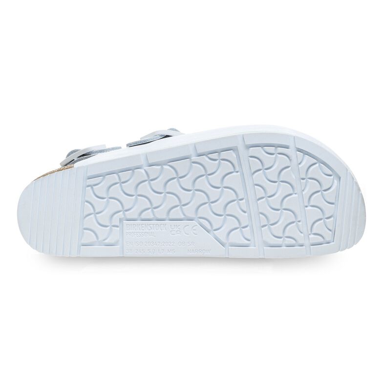 The BIRKENSTOCK classic Tokio Pro has become a true classic among professional shoes, especially for medical professions. The clog is fitted with an anatomically shaped original BIRKENSTOCK cork-latex footbed and a dual-component sole. This comprises a cushioning midsole made from EVA and a nonslip, dynamic, treaded outsole made from genuine rubber. The outsole can furthermore be repaired. Therefore, the clog is particularly well suited to day-to-day wear in hospitals. The upper is made from high-quality, particularly soft natural leather which is coated with polyurethane (PU). The PU coating makes the material more durable and thus particularly long-lasting. The clog offers comfort and safety. The shoe’s enclosed design protects the foot from impacts and the injuries they cause. Thanks to the adjustable strap with a sturdy metal buckle on the instep, it can also be adjusted to the wearer’s feet. A backstrap that can be perfectly fitted to the wearer’s feet thanks to an individually adjustable metal buckle provides the foot with additional grip and a firm step – even when everyday working life gets hectic.