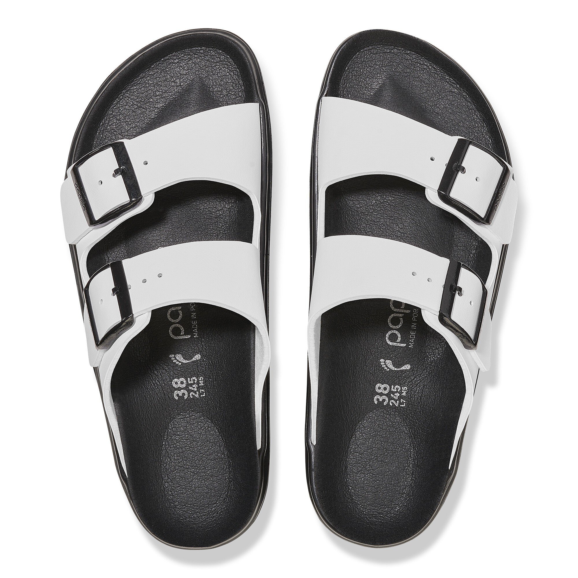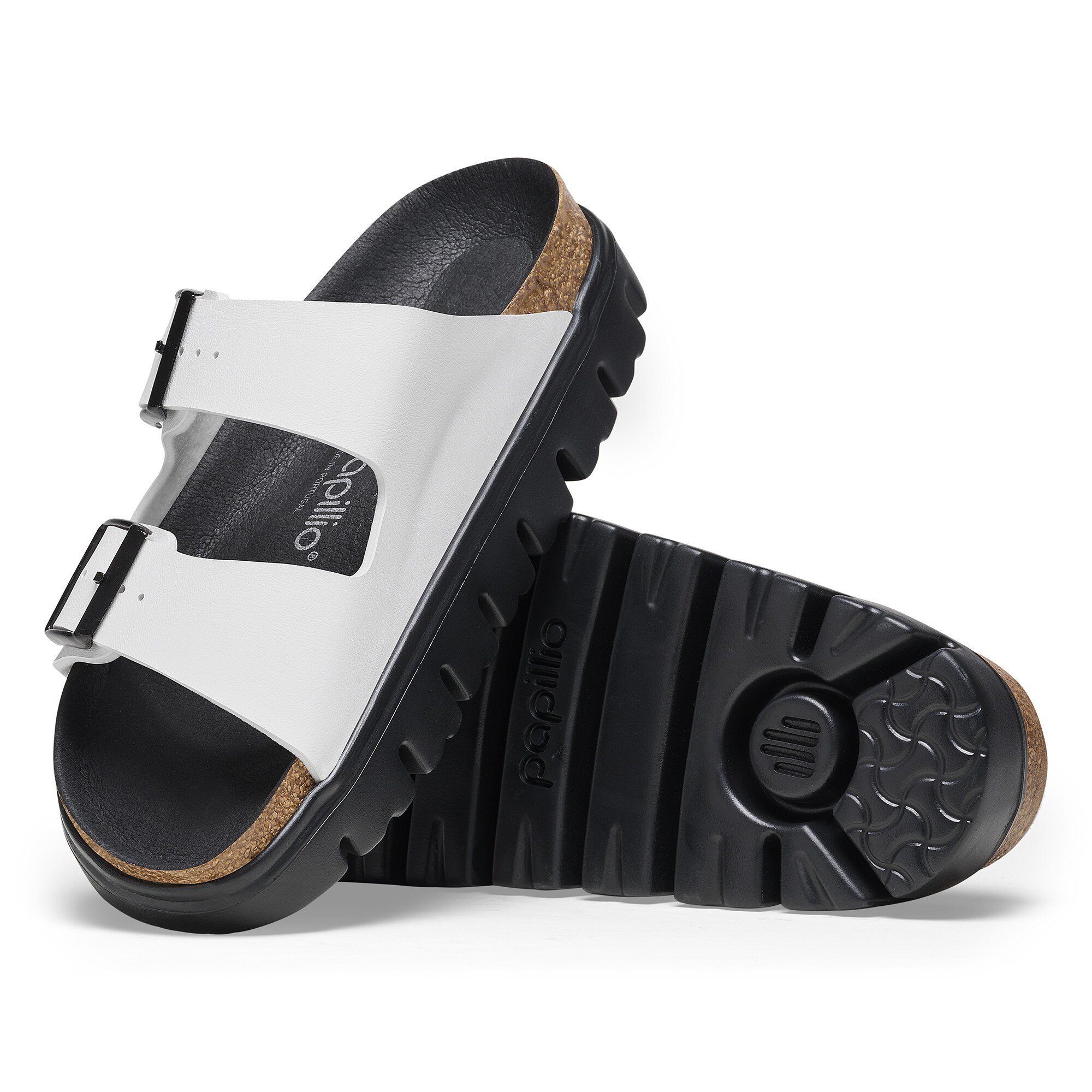 A platform sole takes the Arizona's classic design to new heights—and your style along with it. Its smooth Birko-Flor® upper creates an instant color contrast against its stacked sole. Featuring a contoured footbed that gives you the support of a BIRKENSTOCK sandal.