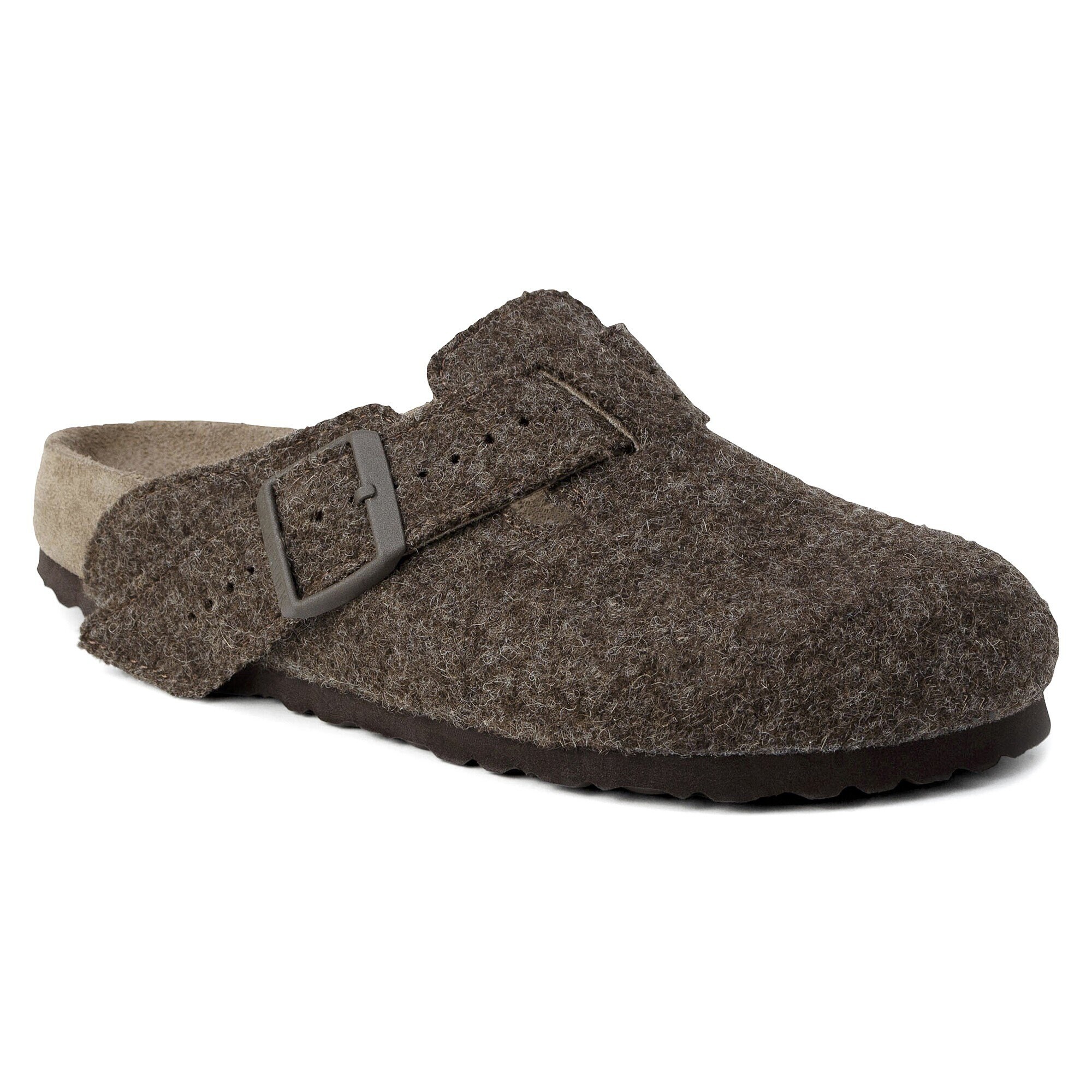 This version of the Boston clog, a classic BIRKENSTOCK model, reimagined by Rick Owens. He’s taken our classic shape and exaggerated the strap all the way to the outer edge. The upper is featured in a textured soft wool Army Brown, mixing comfort and style. Even the smallest details just have a little added flair with its matte brown tone buckles. The classic Birkenstock footbed is fully wrapped in luxurious suede..