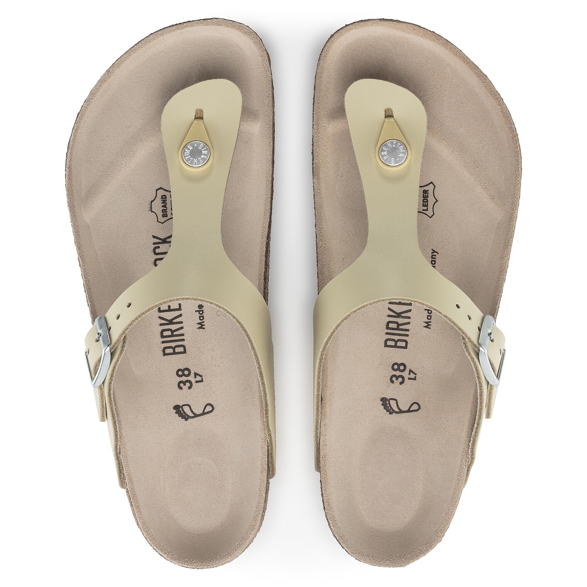 Launched in 1983, the BIRKENSTOCK Gizeh has since become one of our most recognized and sought-after sandals. For its 40th anniversary, we bring back the original design for a limited-edition anniversary collection, with its buckle, footbed stamp, outsole and packaging all inspired by the 1983 original. Every pair of the limited edition bears is own unique number and comes with the red BIRKENSTOCK seal and matching socks.