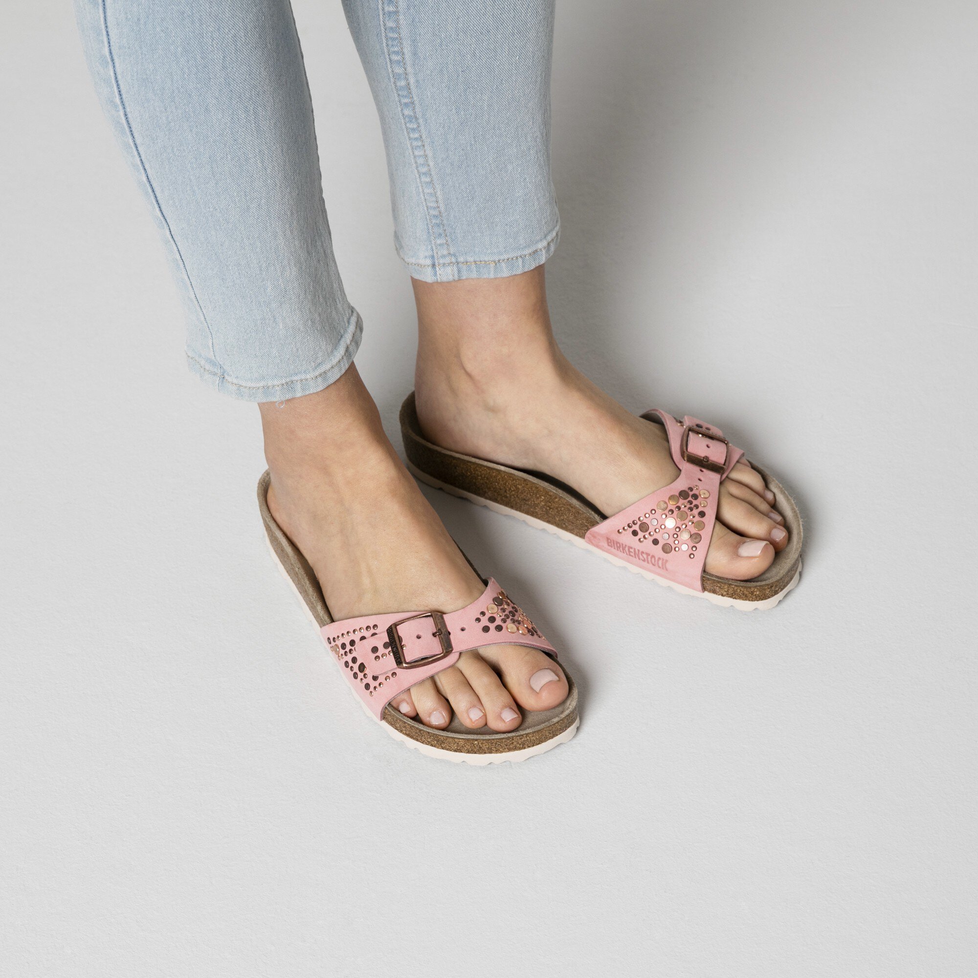The BIRKENSTOCK Madrid is a veritable classic that delights the world of fashion with its minimalist design. As part of our Crafted Rivets collection, this model features decorative metal rivets which are unnoticeable when the shoe is worn thanks to an elaborate production process that makes them penetrate the leather firmly, but not deeply. It’s quite an eye-catcher! The upper is made from high-quality nubuck leather that boasts a natural, rustic appearance.
