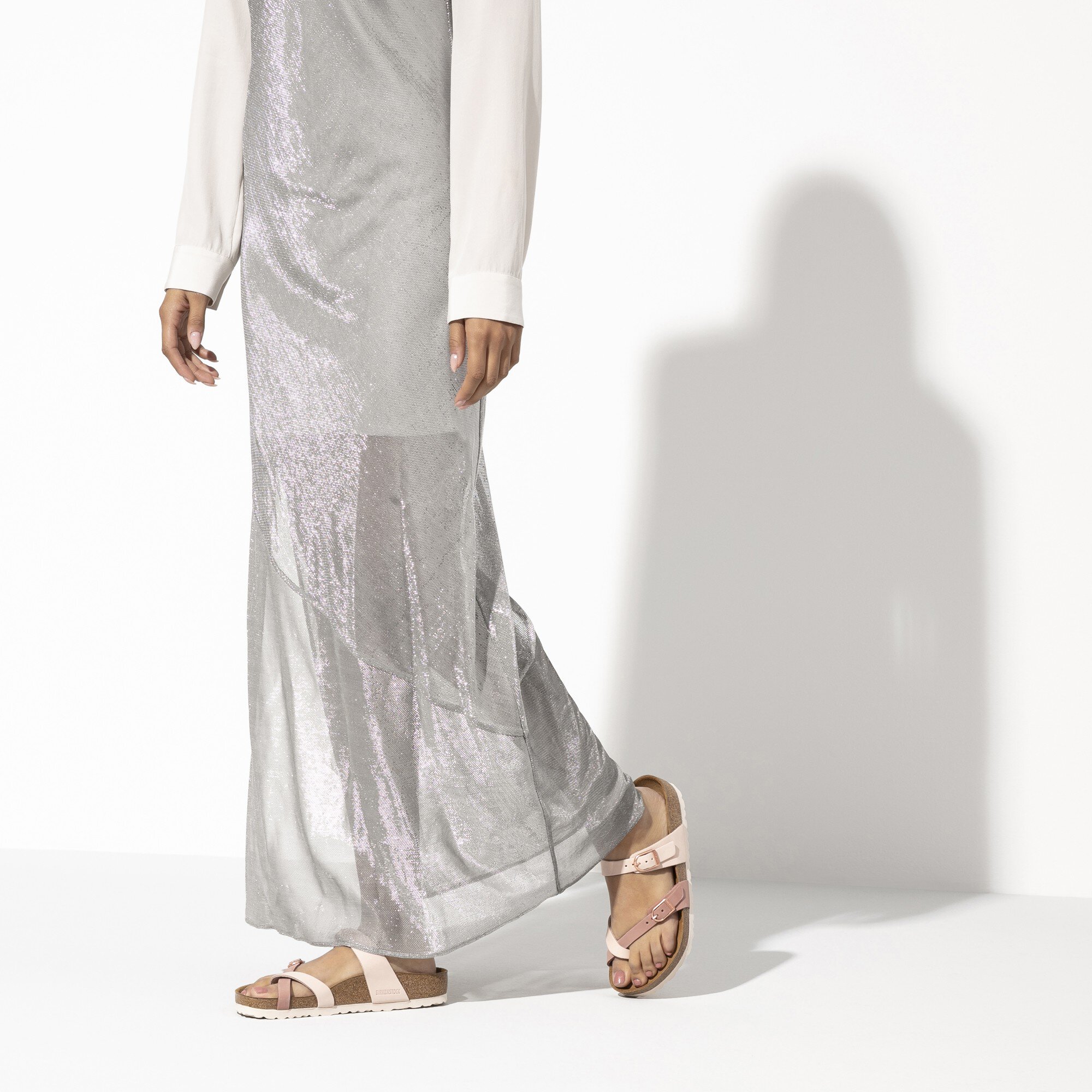 The BIRKENSTOCK Mayari thong sandal is a modern model with a toe loop. This version features a twist of contrasting colors to really catch your eye. The upper is made from soft, nubuck leather.